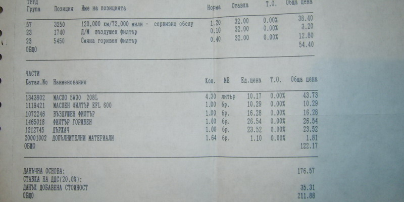 Направил си обаче голяма грешка. Никога не оставяйте колите си в Мото-Пфое за ОБСЛУЖВАНЕ. Излиза по-скъпо. Това ме посъветваха самите приемчици там!!!