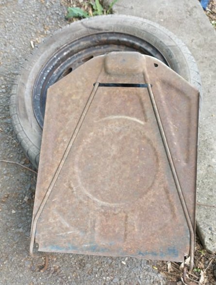 Следва сваляне на резервната гума и ламарината която я държи: