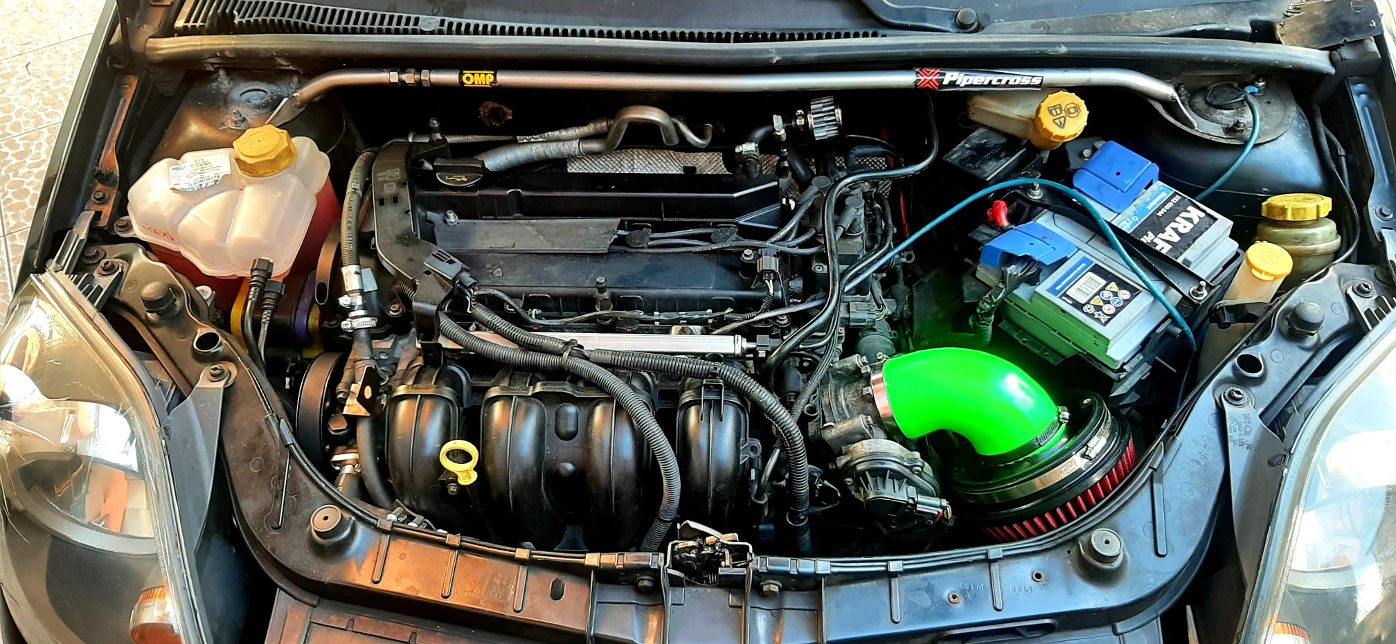 Така извади най-много коне на диното, отделно този филтър е доста голям заради velocity stack-а и вътре в купето има място за него само с един вариянт маркуч, но се губят над 3 коня. Затова за писта се пуска така, хем и да се слуша по-хубаво звука.