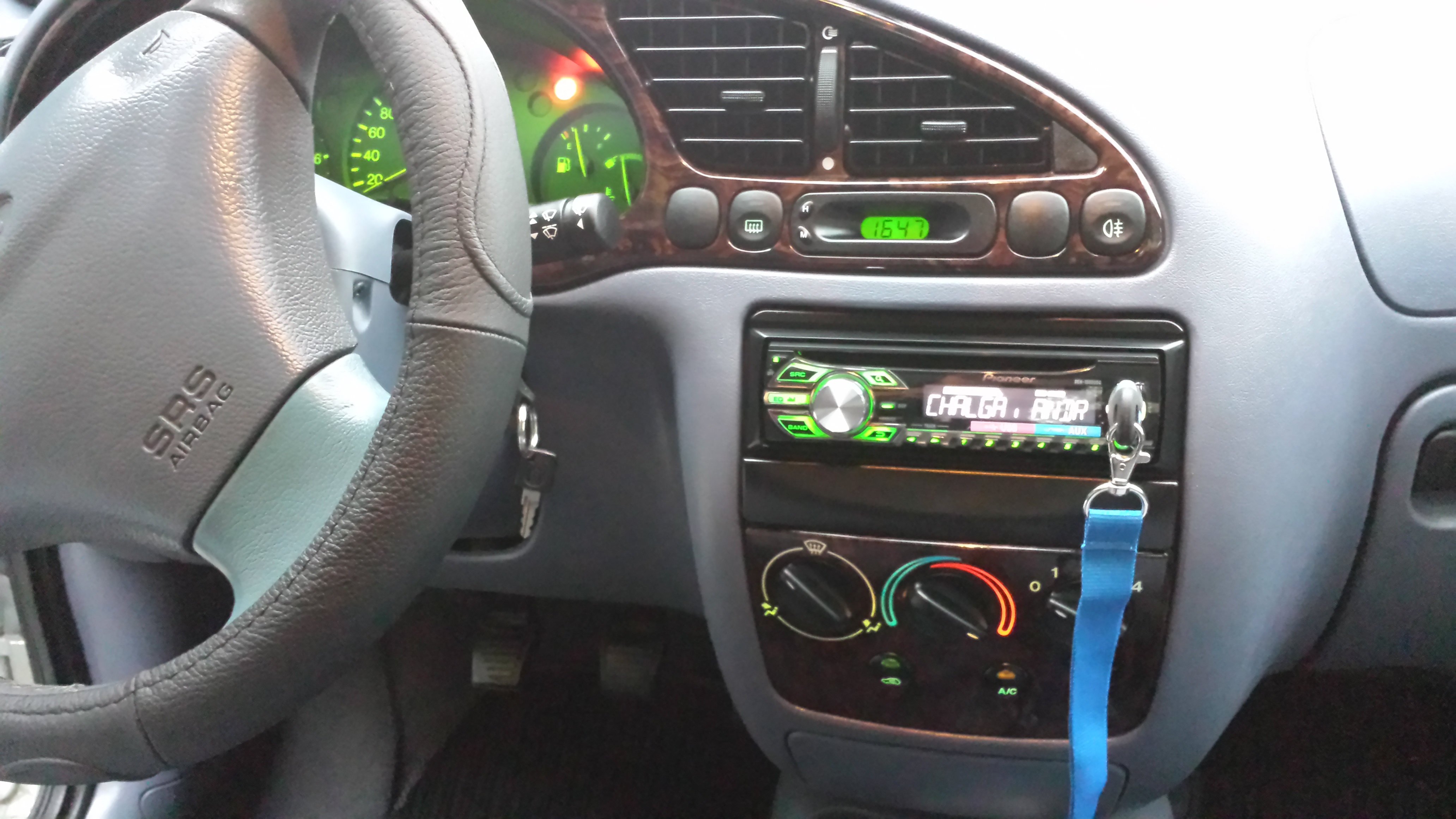 Дисплея на СД-то свети в зелено, точно, като зеления цвят на всичко светещо по купето и таблото.