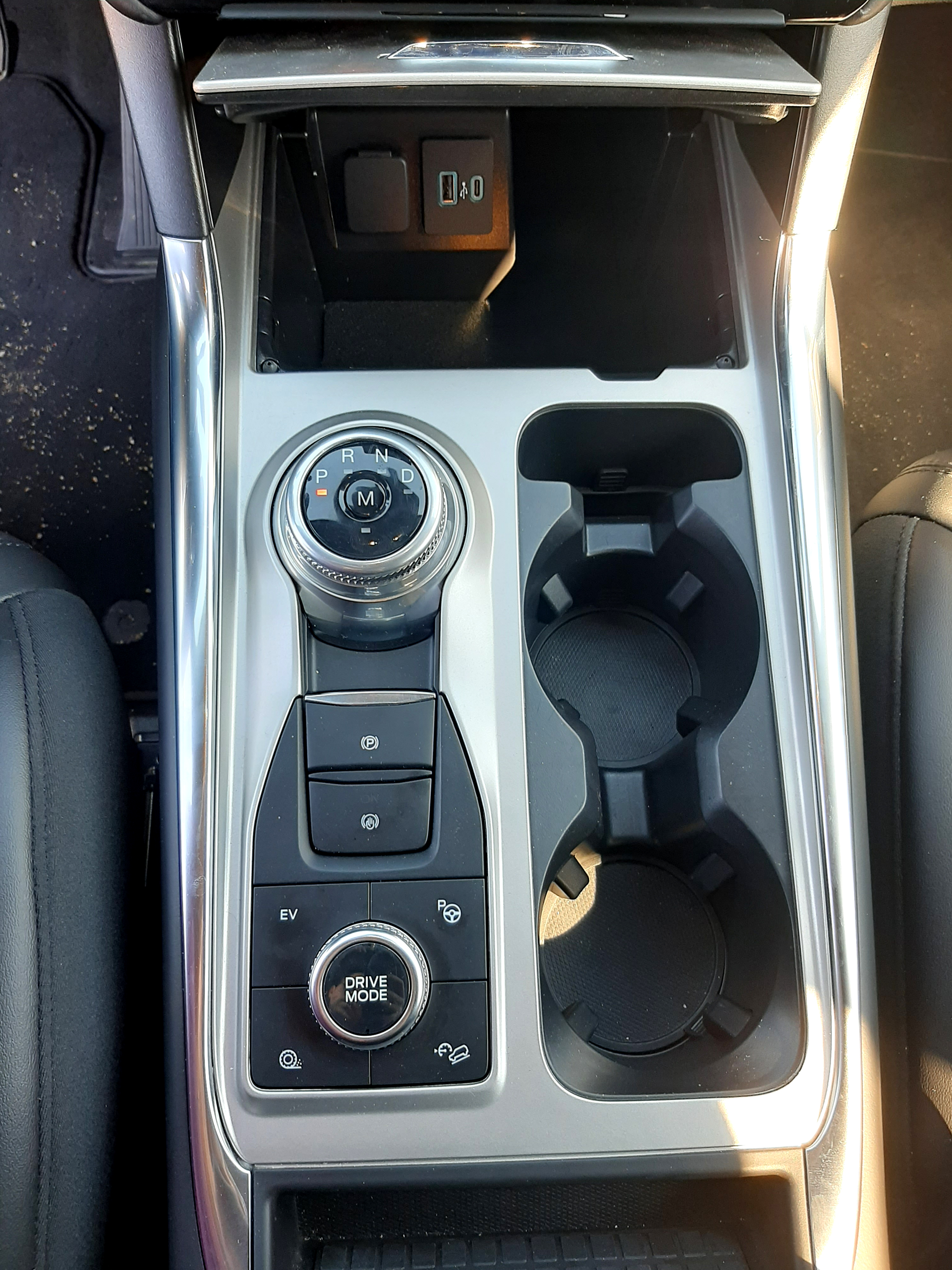 Режимите за управление на задвижването NORMAL, EKO, SPORT .. променят поведението н педала на газта и начините на движение, на ток или комбинирано. Не знам колко коня е електромотора, но като свърши батерията, малко падна ускорението. Много ми хареса, че двигателя свързан с 10 степенна кутия, като има лостчета на волана. Това дава много по-добро контролиране на колата и надлъжните ускорения.