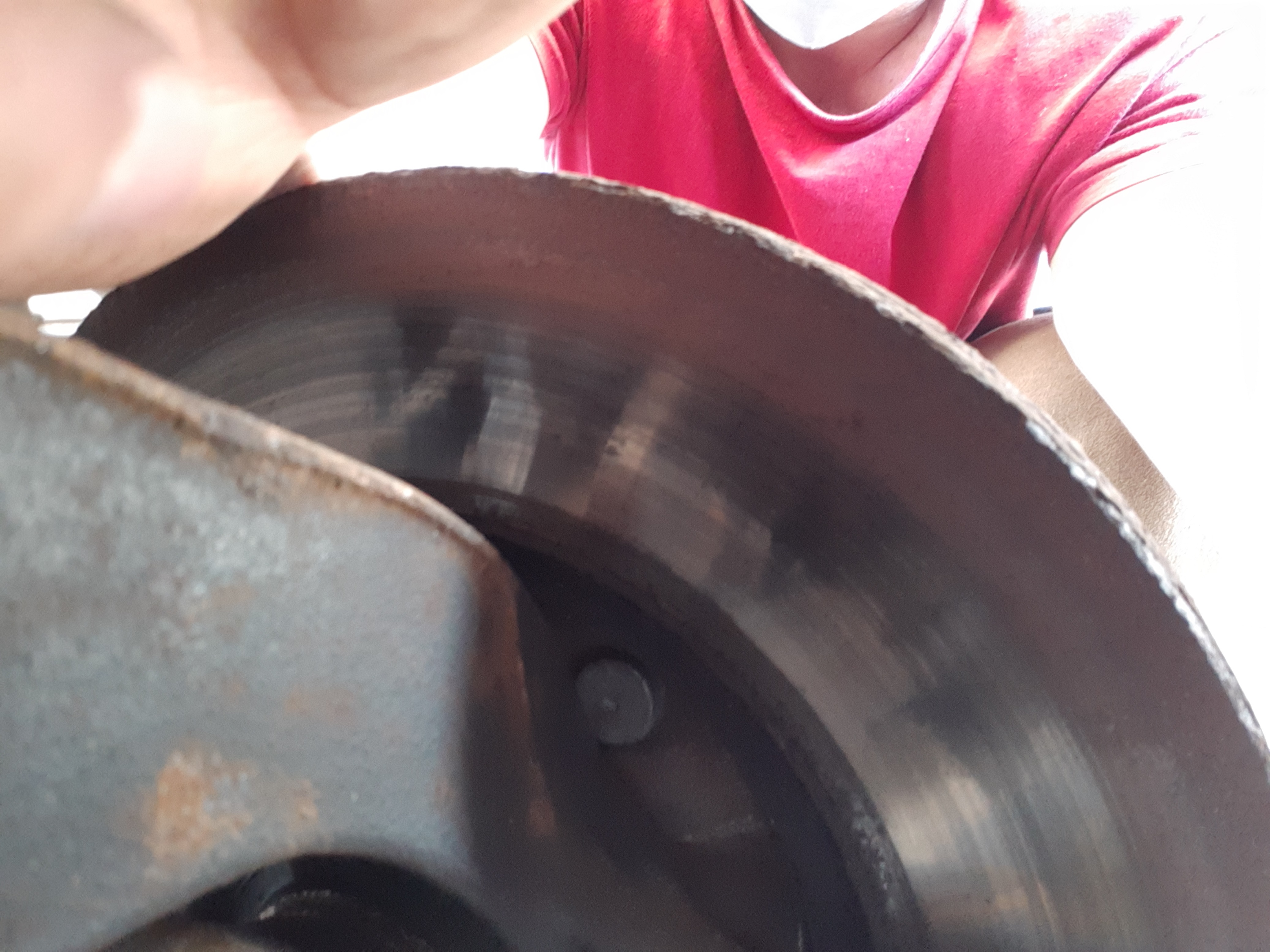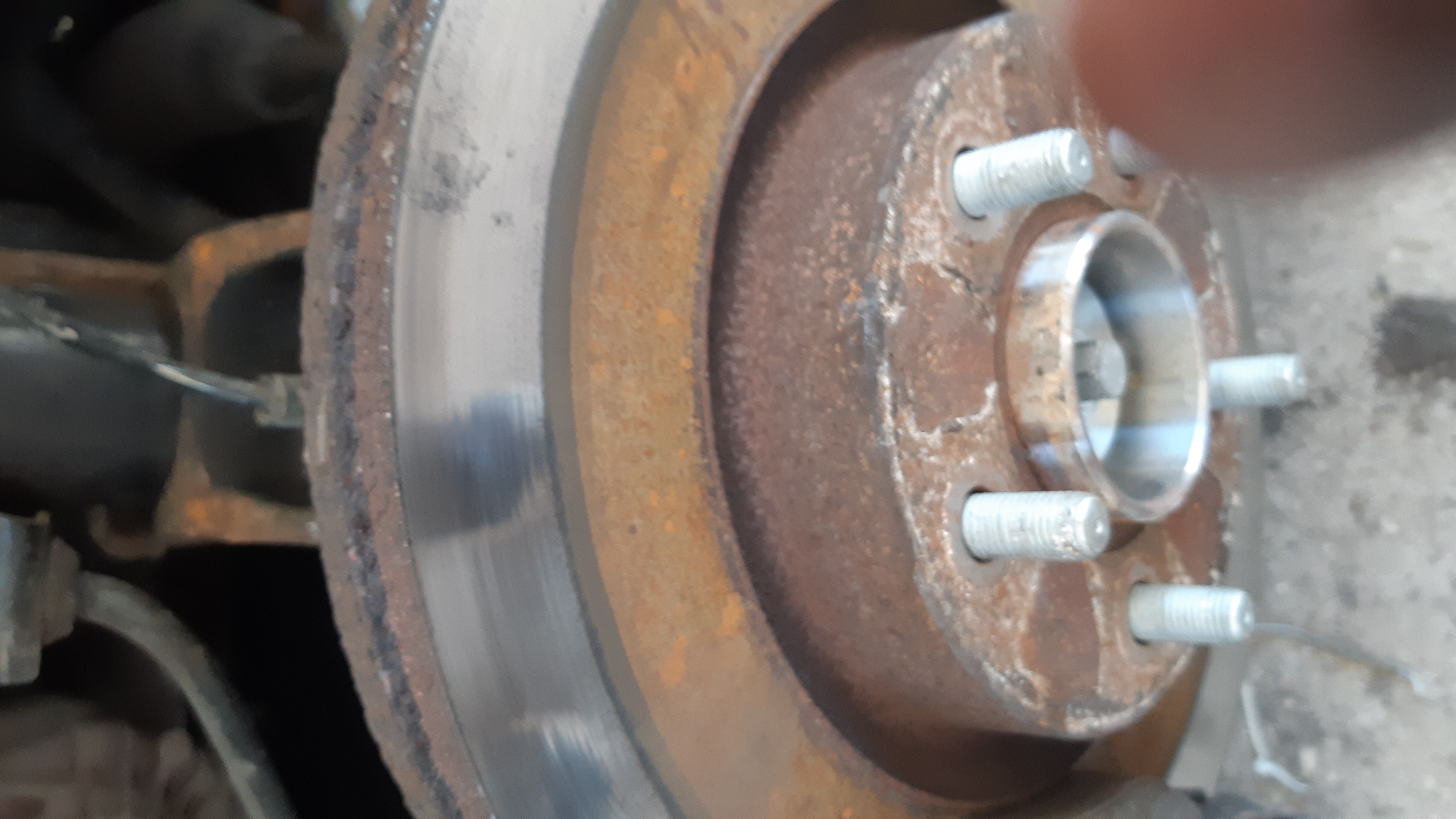 Не знам какво са стъргали, но ръждивата половина с по-малкия диаметър също е престъргана, доста фино, за разлика от другата половина. В момента нямам вибрации при спиране, сега като се появи ръжда и покарам ще видя къде трият накладките.
