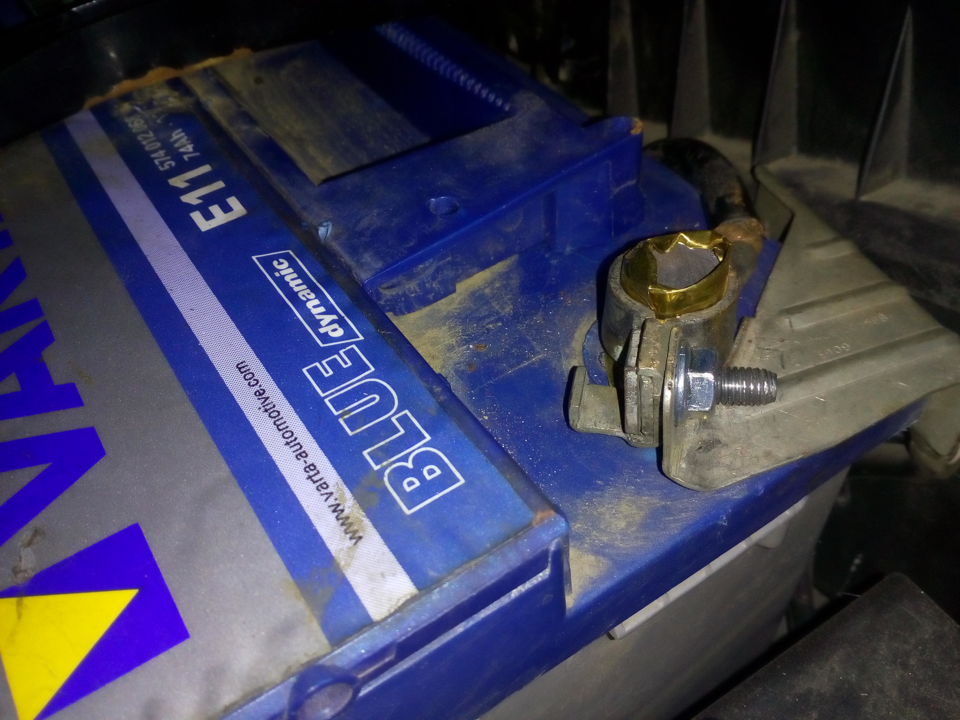 Въпреки че е затегната наистина до край, клемата на положителния полюс на акумулатора е толкова хлабава, че направо се вади от пин-а на акумулатора. Поради това подходих с българска инжинерна мисъл и уплътних луфта с два пласта тънка медна ламаринка (така, както е показано на снимката) Въпросът ми е подобно побългаряване би ли могло да създаде някакъв проблем ( двигателят е 1.8 ТДИ Ендура Д) или мога да си карам съвсем спокойно. ОСвен това предвид, че акумулатора е съвсем стандартен от разпространена марка от какъв зор се получава тази разлика в диаметрите, че клемата да се вади свободно и при максимално затягане ?
