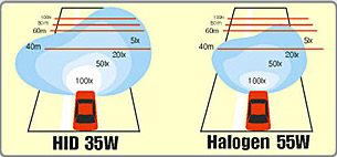 Сравнена с съществуващите халогенни лампи, които излъчват светлина чрез нагреваема жичка от 12 волта, ксеноновите системи няма нужда от такава жичка, която често изгаря.