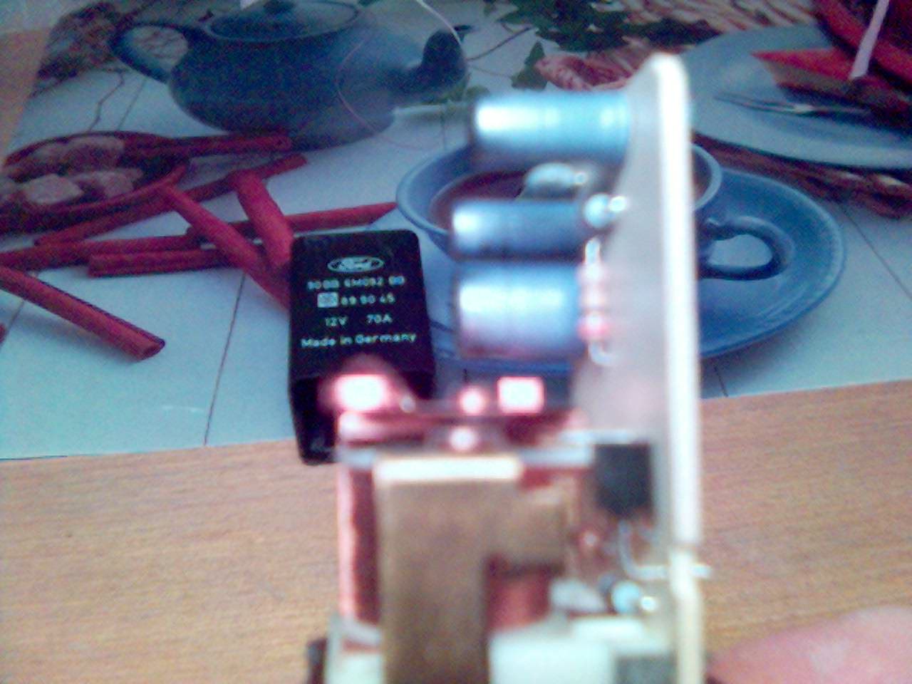 ТОКЪТ ПОДАВАН ОТ РЕЛЕТО ДА ПОДГРЯВАНЕ Е МНОГО СЛАБ(малък ампераж),който се поглъща само от едната свещ.Следва сваляне на релето,изчистих силикона отдолу и го отворих.КОНТАКТИТЕ НА РЕЛЕТО БЯХА НАГОРЕЛИ,но то си работеше и електрониката му беше в изправност.Успях да почистя контактите и сега работи без проблем и Форда пали от раз независимо от температурата навън.Ако някой се съмнява в подобна неизправност на релето,може да опита подгряване с кабел директно от + на акумулатора и на свещите.Тук са нужни двама души-един да подгрее и един да върти на контактния ключ.Втория начин-измерване на напрежението на ВСЯКА СВЕЩ докато релето е включило(при подгряване)Трябва на всяка свещ да е около 11V.Възможна причина за нагара на релето-дефектирала свещ,и отдалечения предпазител(бушон) 50А до акумулатора.Ако е монтиран близо до релето може да изгори и да предпази релето,както е при VW.Ето и снимки от разглобеното реле.Съжалявам за качеството.