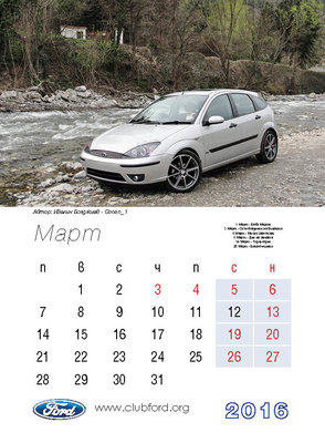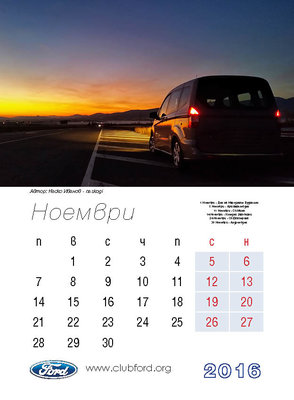 Календар на Клуб Форд България за 2016