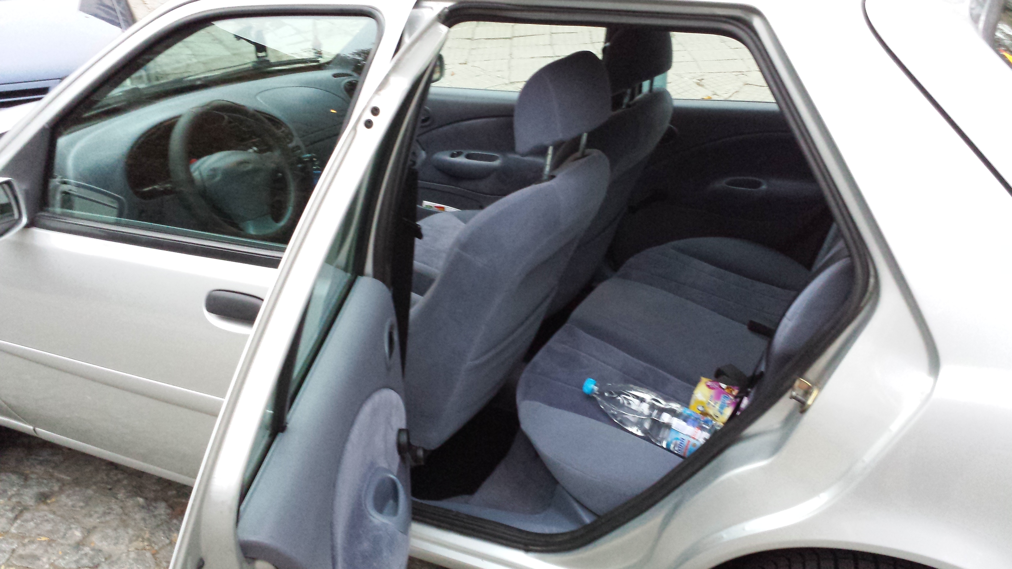 Значи... Фиестичката е началото на 1999 година. Докарана от Италия, с прекрасно запазена боя. Сив металик е, 4 врати, всичко по нея за момента функционира. Всичко, като заводска окомплектовка по нея си седи... крикове, лули, теглич, книжка на модела и прочие... Не е удряна, няма грам ръжда и драскотина никъде и поне на първо четене е нетипично изрядна и прилежно поддържана за Италианска кола. На километража показва 93000 км ( колко са истина... идея си нямам, имайки се в предвид, че на 100 000 превърта километража и почва от 0 ). Склонен съм да вярвам, че е на реални толкова, съдейки по настоящото и състояние.