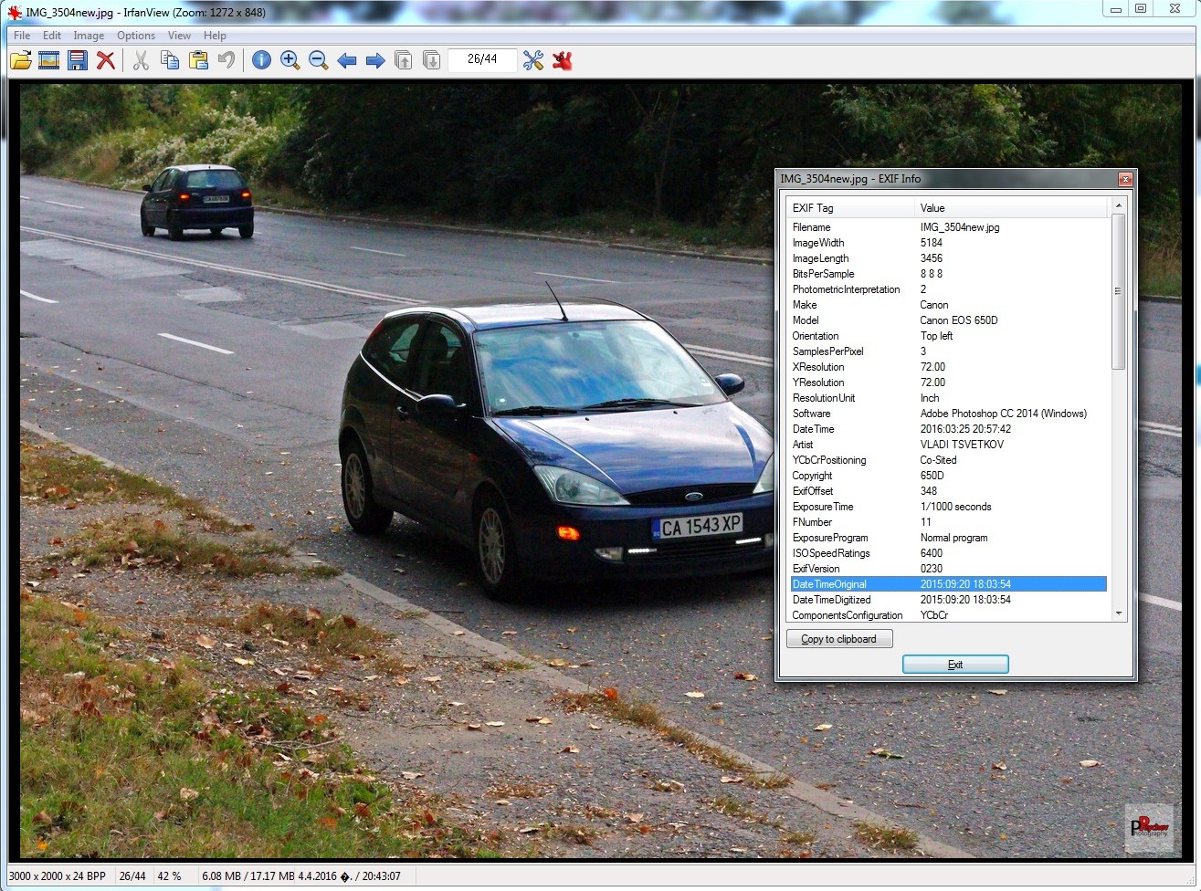 За да няма съмнение прикачвам EXIF информацията в която се виждат датите на които са правени снимките.