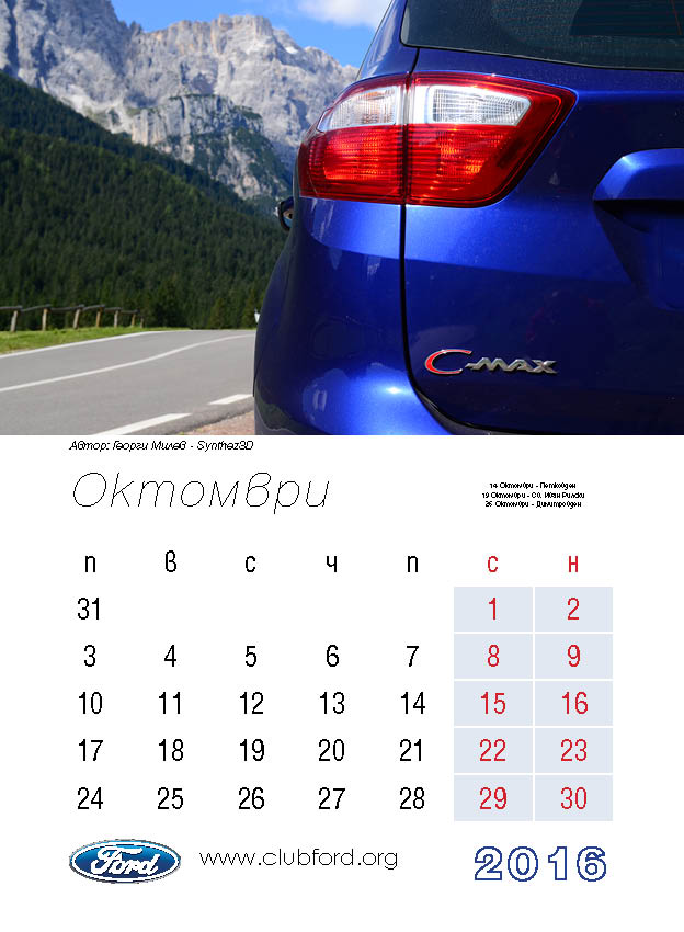 Календар на Клуб Форд България за 2016