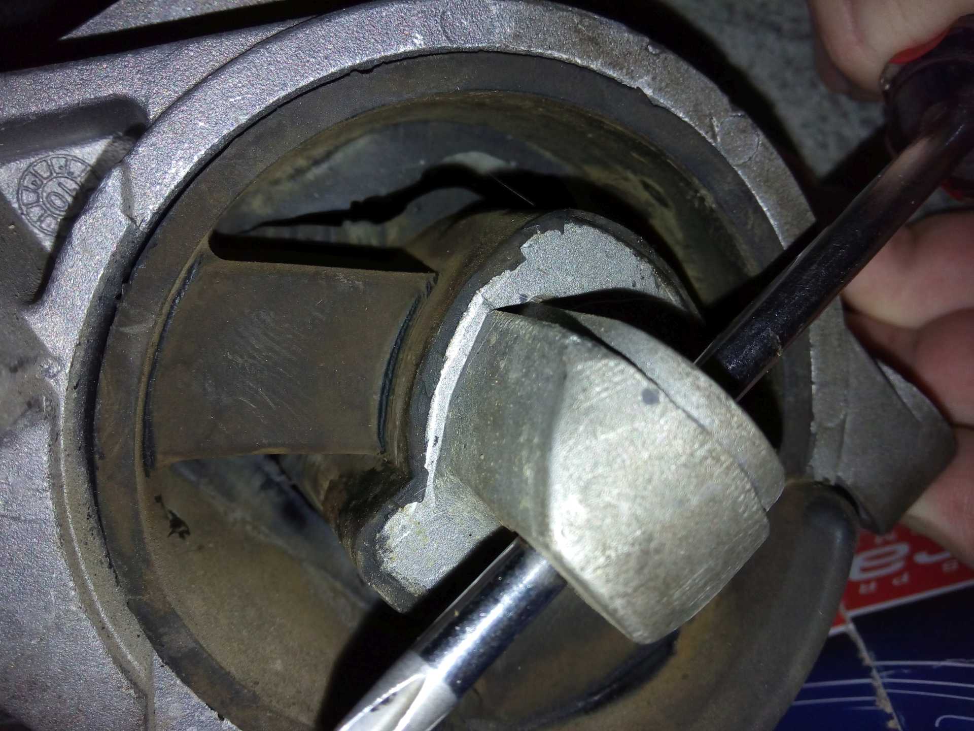 Мисля, че заради пукането си е играл да вади стария прясно сменен лагер и е излязъл много лесно.