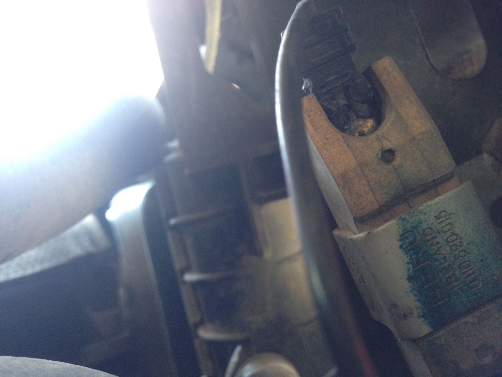 На ръка се върти. Нямам особена идея как да направя това ,което ме съветваш,но ще го гледам и ще мисля как да го направя. Има едно нещо ,което хич не изглеждаше добре , направо си висеше кабел от него. Пада се от лявата страна точно до радиатора. Ето и снимката ,която му направих в случай , че ще ти помогне да ми кажеш какво е. Като окъся датчика релето чуква ама нищо повече не се случва