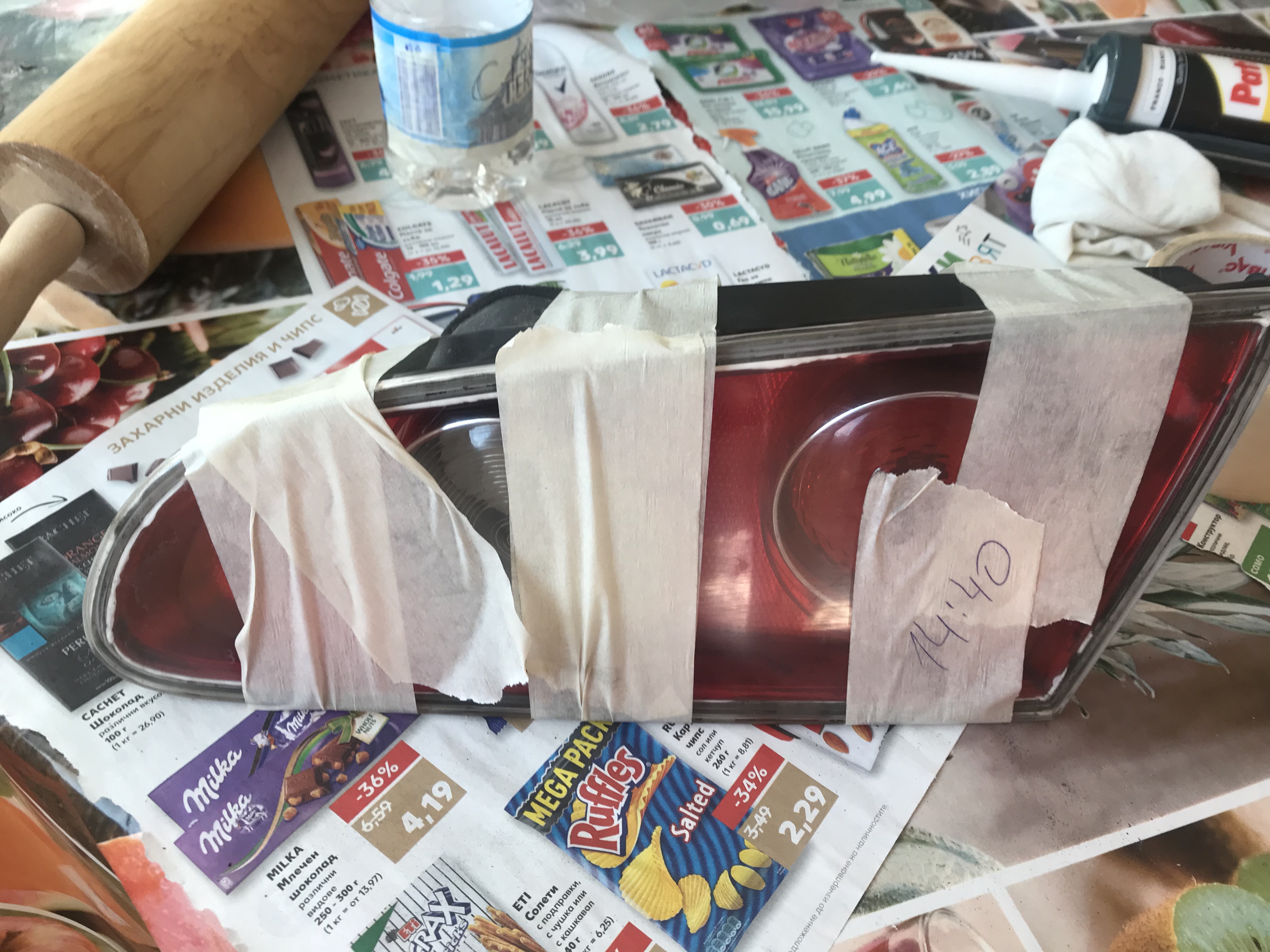Втория стоп се спука на 2 места мъничко, тъй като пластмасата не беше издържала слънчевите лъчи толкова години и беше счупена/напукана в единия край. Тези пукнатинки също обмазах със силикон вътре и вън тъничко, така че да е само като прозрачен филм, невидим ако не си го завреш в очите.