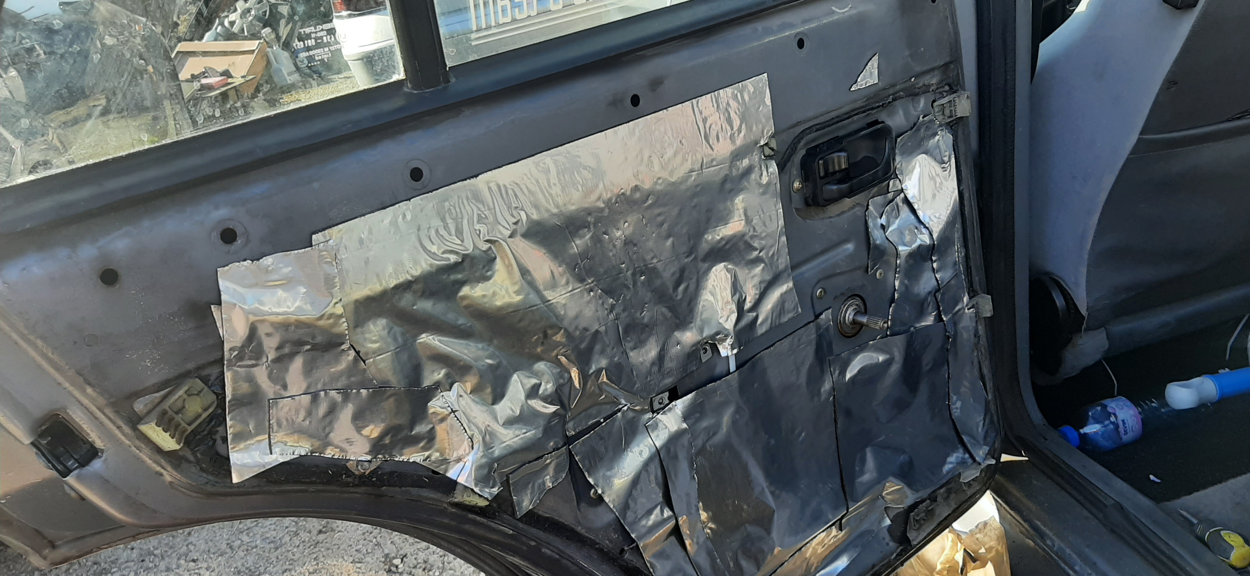 Малко шумоизолация на вратите, след като бяха облепени от външния панел, сега и под тапицерията.