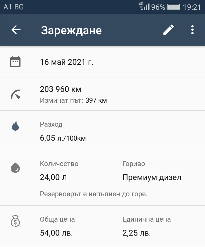 Харманли-априлци-харманли през шипка.6,05 на колонка-6,9 на борда.мисля че е добре.400км