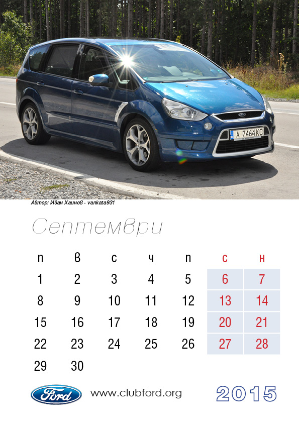 Календар на Клуб Форд България за 2015