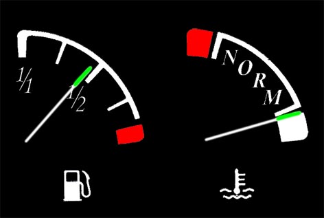 Миналия месец при каране вдигах до към 3000об/мин и стрелката за температурата се закотвяше като на картинка №2 и не мърдаше от там. От тази седмица смених малко стила на каране - вдигам до 2000 об/мин и положението на стрелката започна да клони към картнка №1 и то доста точно.