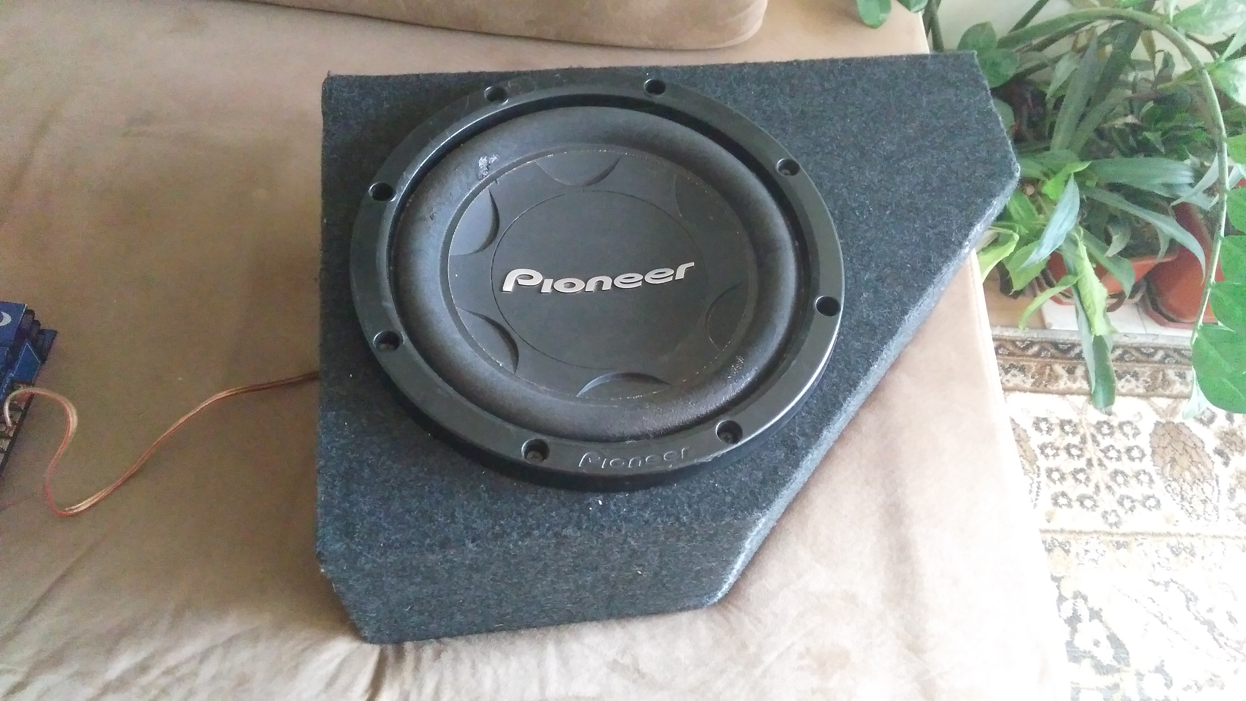 Бас касата е правена по поръчка така че да влиза в дупката между левия заден подкалници и стопански. 12 пайнер свири отлично. Продадох колата и ми е излишен . Цена с усилвателя 220 лв
