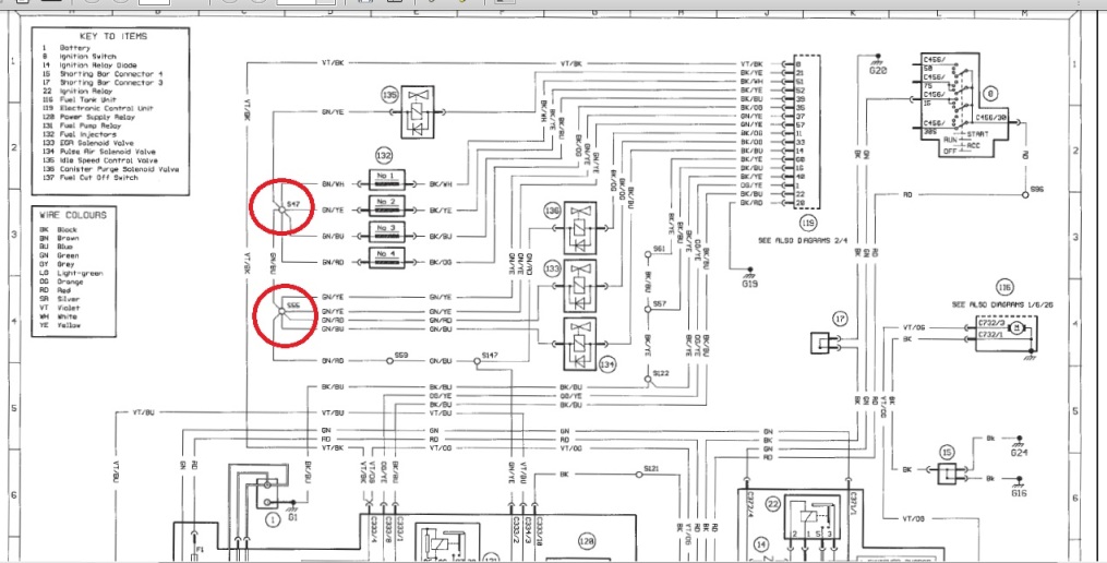 Интересува ме дали има някаква принципна схема на положението на общите връзки на кабелите [Водят се soldered joints]. Например къде може да се намират S47, S55.... на Мондео '93 1.8 тд.