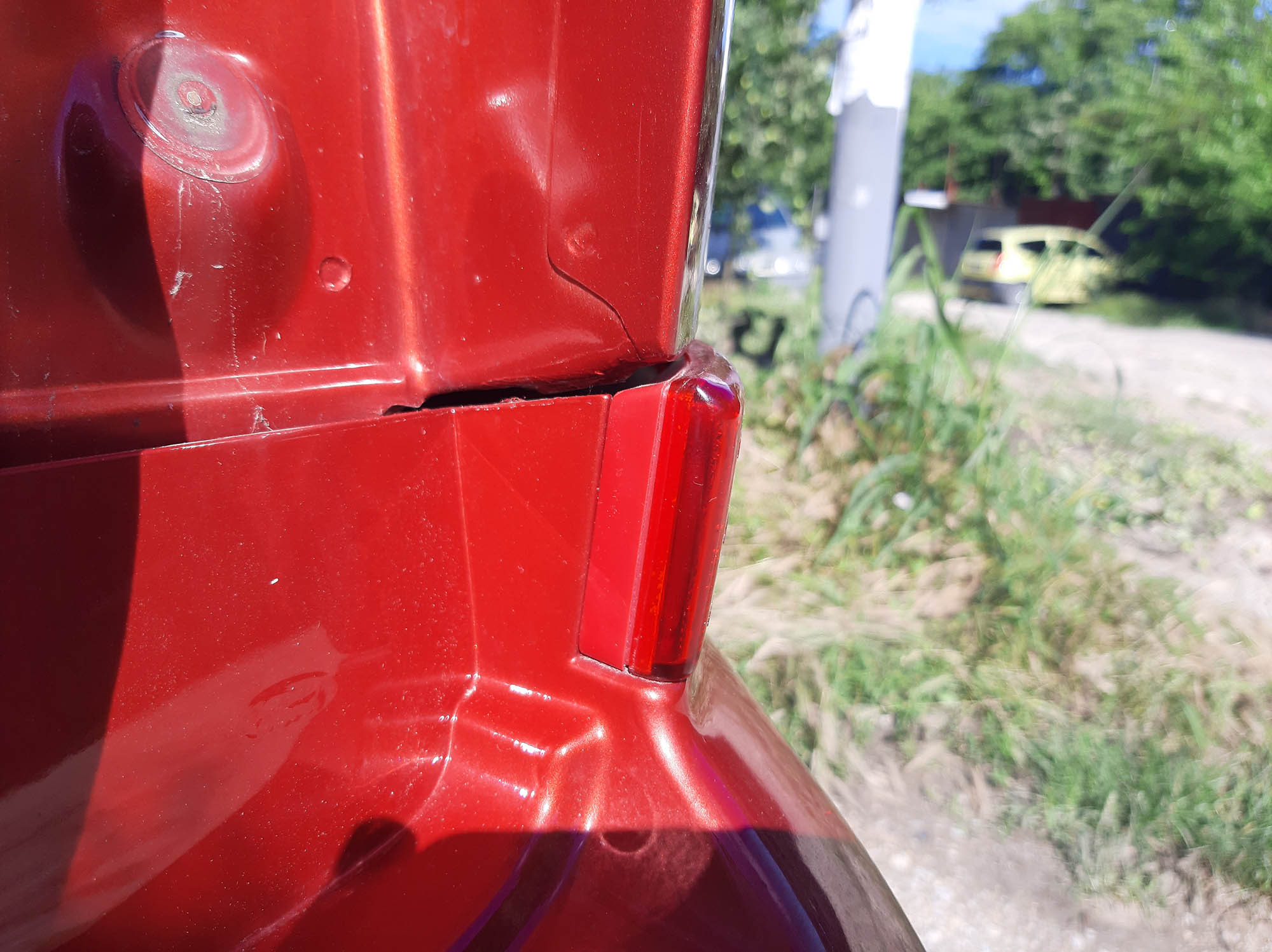 При мен след силният удар отзад левият светоотразител в долната част на бронята стана на три парчета, но го залепих, китосах със стъкловлакнест кит, изшкурих и го облепих с лепенка, която е досущ светлоотразителна и почти не се различава от оригиналната част, но ако не намеря читава такава част ще лакирам с двукомпонентен лак лепенката, защото повърхността и ще се скапе сравнително бързо и така ще изкарам няколко години :D