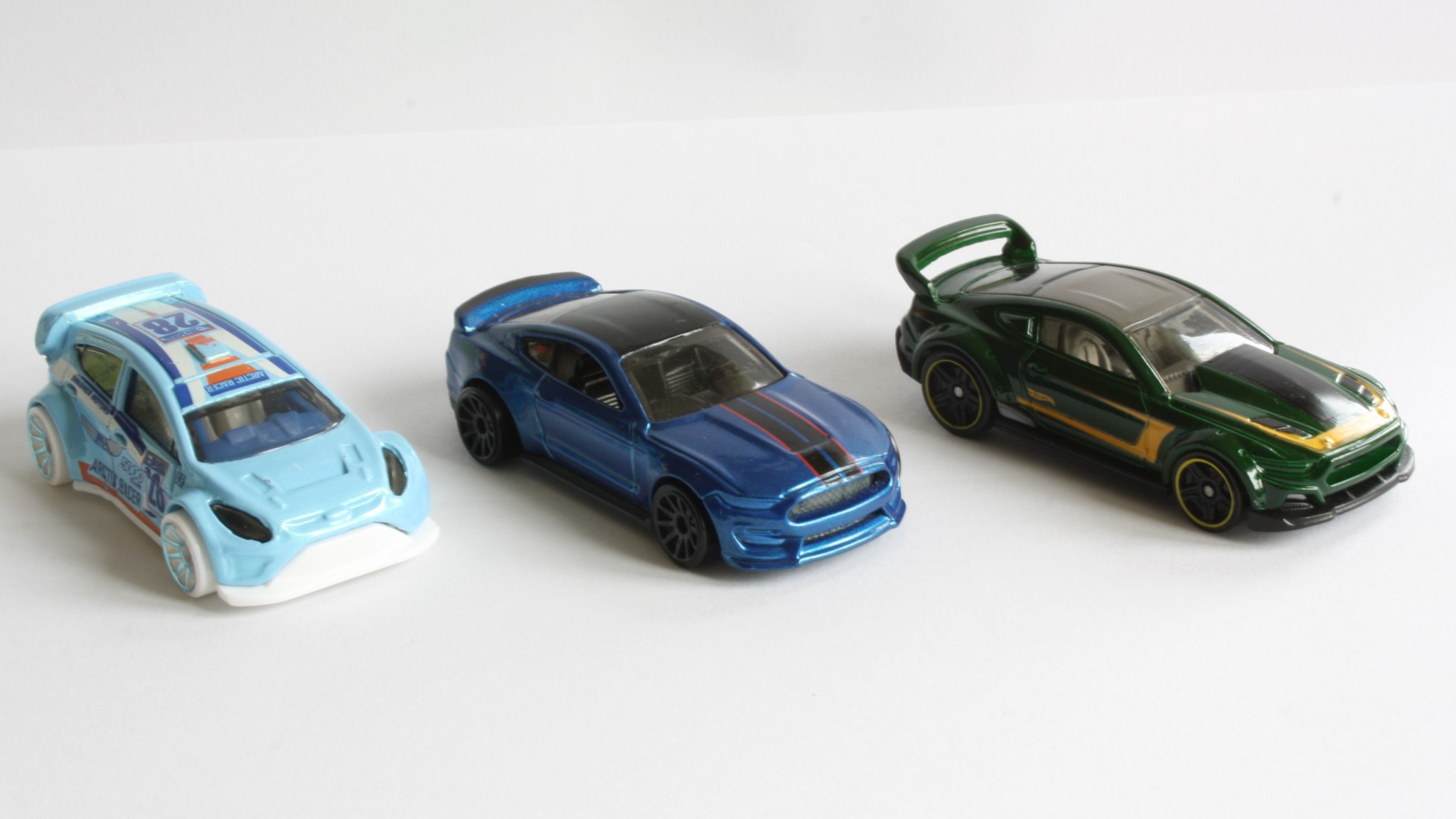 3 модела Hot Wheels: '12 Ford Fiesta, '15 Ford Shelby GT350R, Custom '15 Ford Mustang
