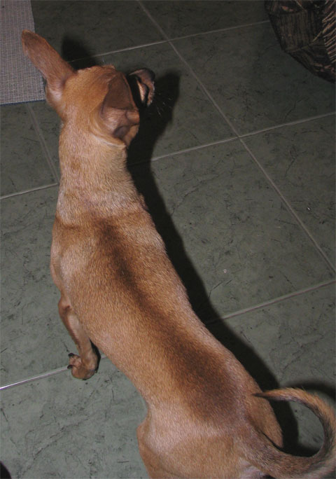 Имаме куче, пинчер, светлокафяв, момченце. Хубу, ама девствен... Лоша работа вече