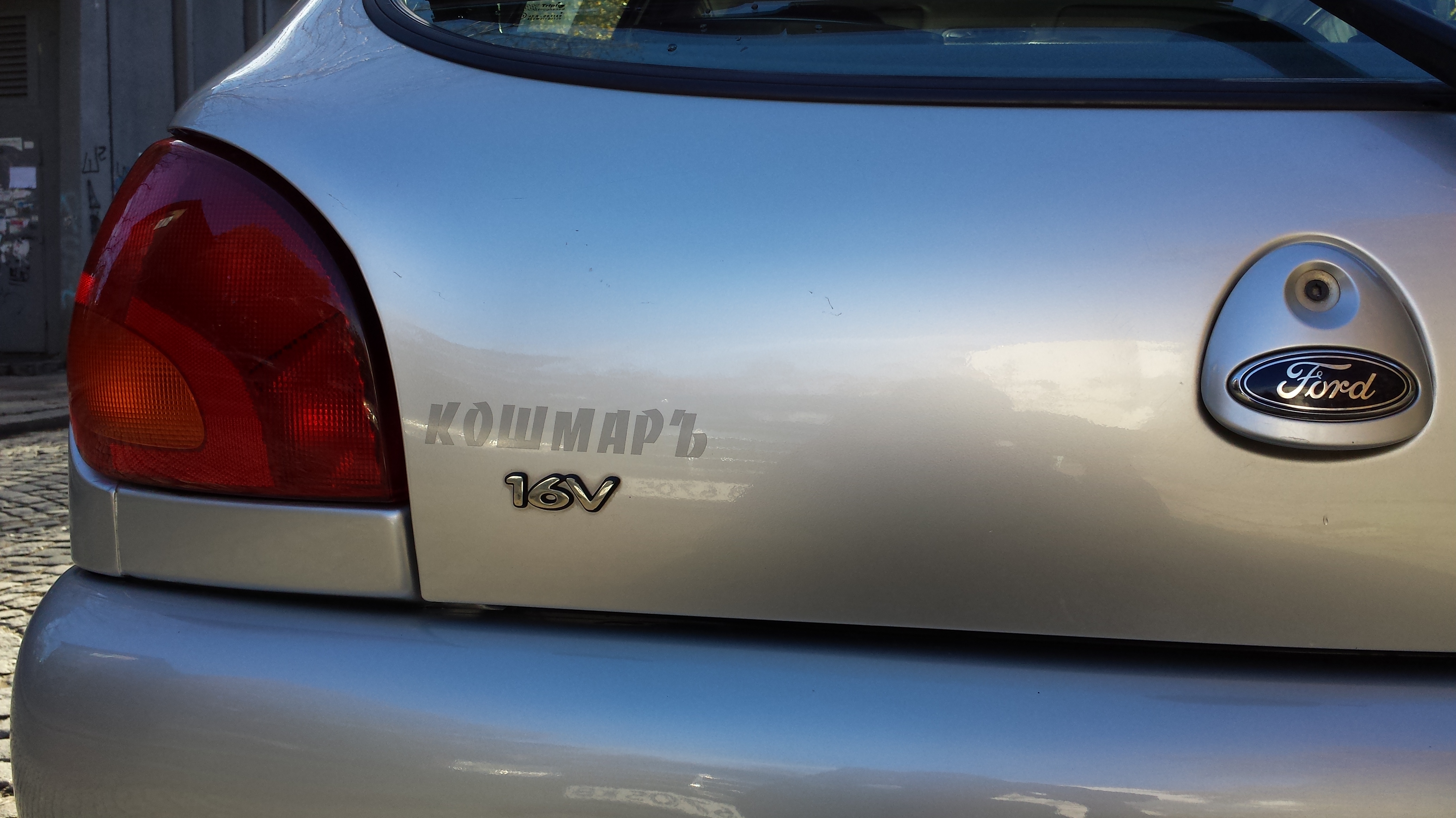 Лепнах отзад логото на сервиза, на пича от който купих Фиестичката и ми я поддържа