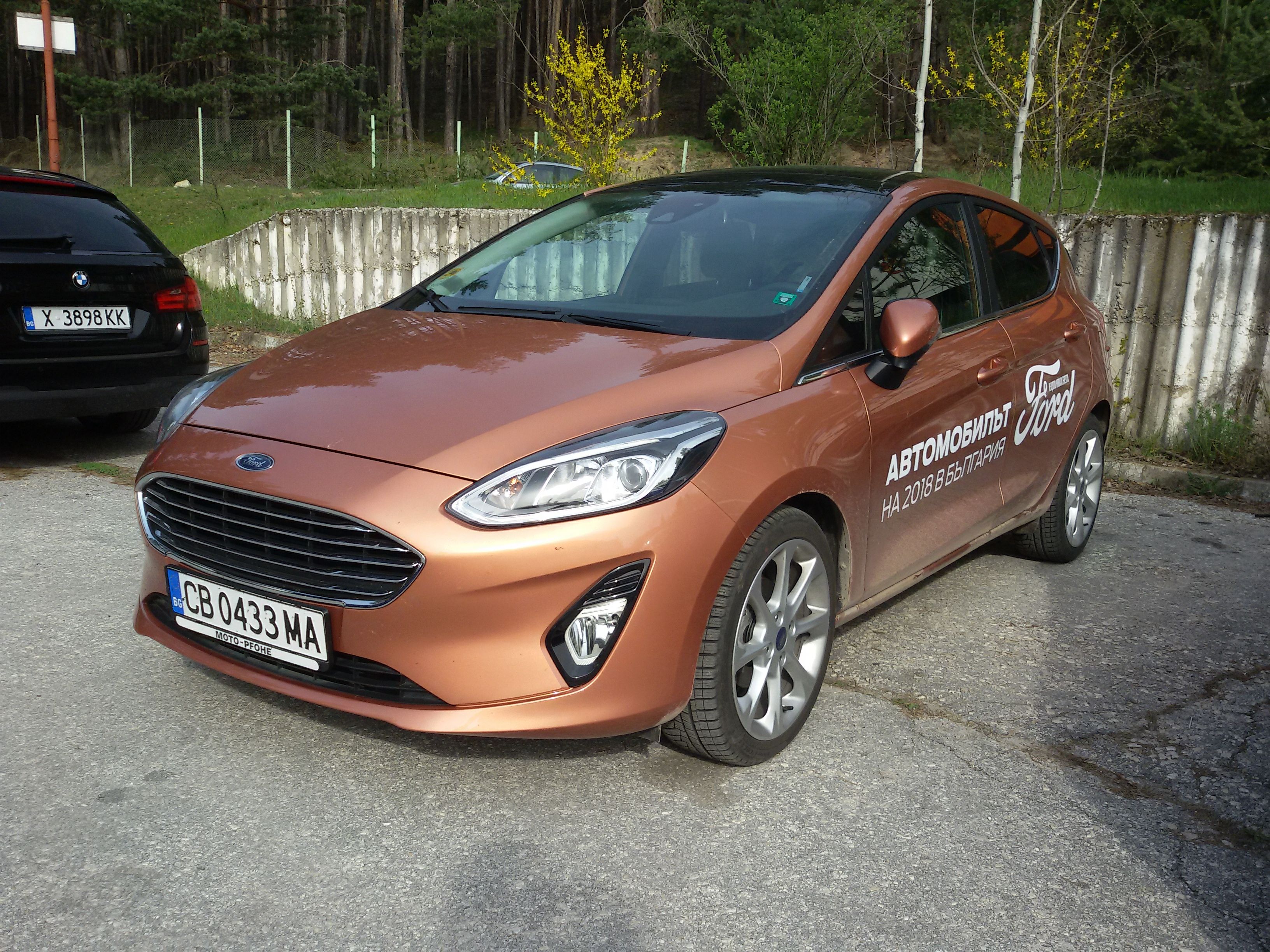 За Фиеста-та: панорамния покрив е нещото, което веднага те грабва по планинския път. Всеки, който се е качвал на Фиеста след 2012 ще каже, че тази е същата, в общи линии е така. Екранът поставен в средата, мен лично ми допадна - има много настройки, музиката е с добро качество и т.н.