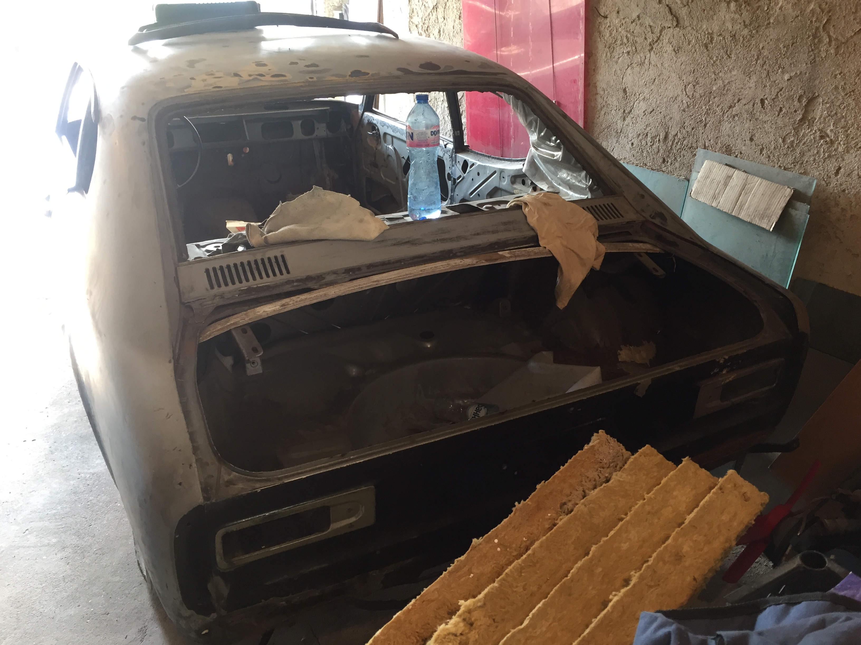 даже беше направен и тест драйв и като цяло се държи добре, разбира се има още много какво да се желае, но като за кола която не е палена от толкова време е перфектна. Започва работа по купето с ръждите и кърпежите