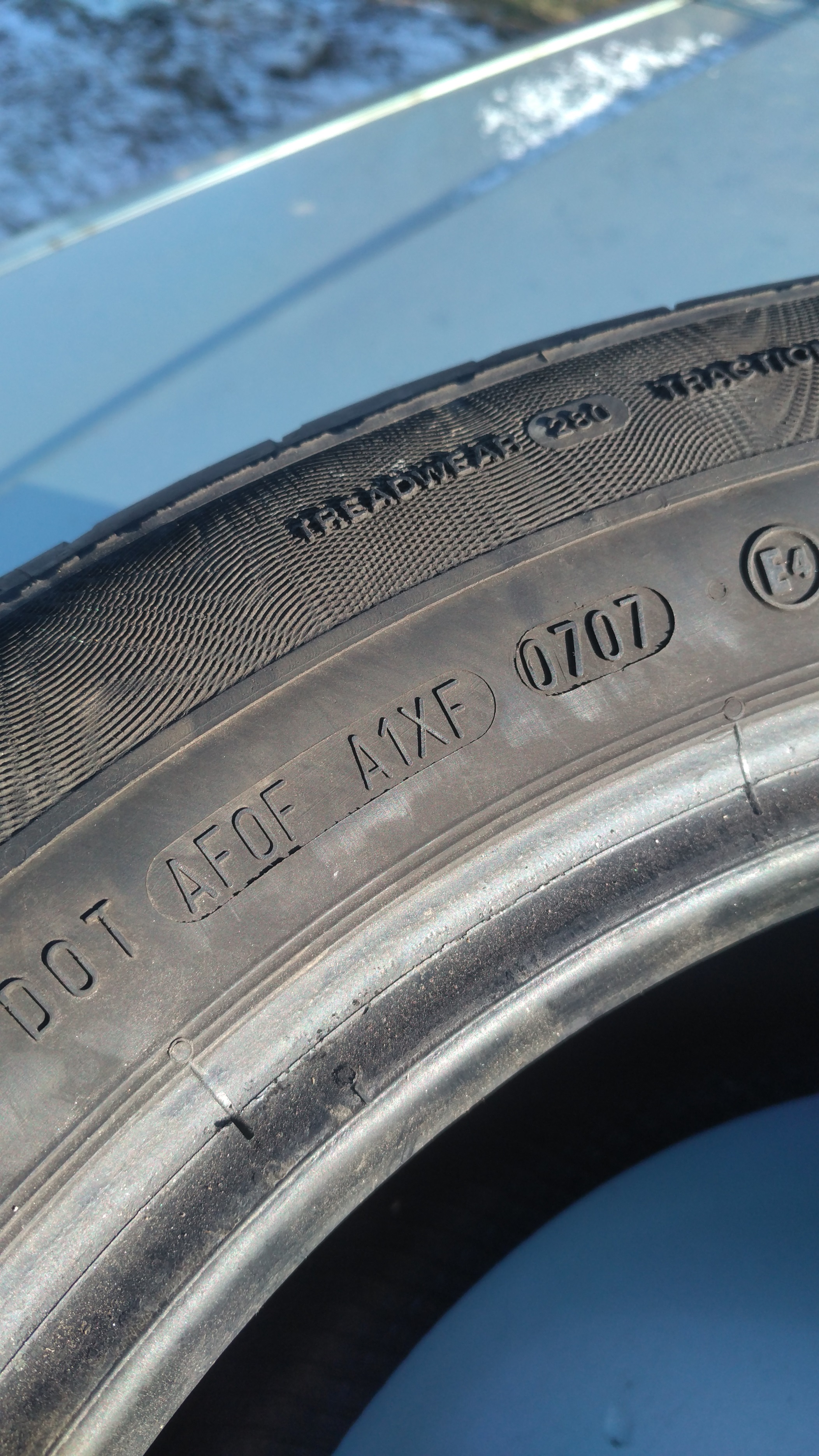 Честно казано нямам никакви забележки към поведението на гумите. В края на този летен сезон обаче, гумаджията при който ходя от 13 години и на който имам пълно доверие що се касае за гуми, ми обърна внимание, че по дължината на всеки надлъжен грайфер на всичките 4 гуми са се появили пукнатини (снимка1, снимка2, снимка3 ) и според него на тези гуми вече не може да се разчита.