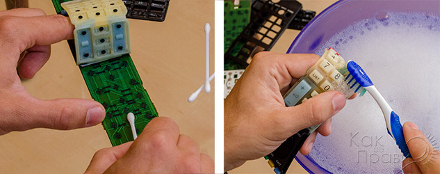 Там се ползват SMD бутони и при тях почистването почти не дава резултат. Но пък бутони се продават и се сменят.