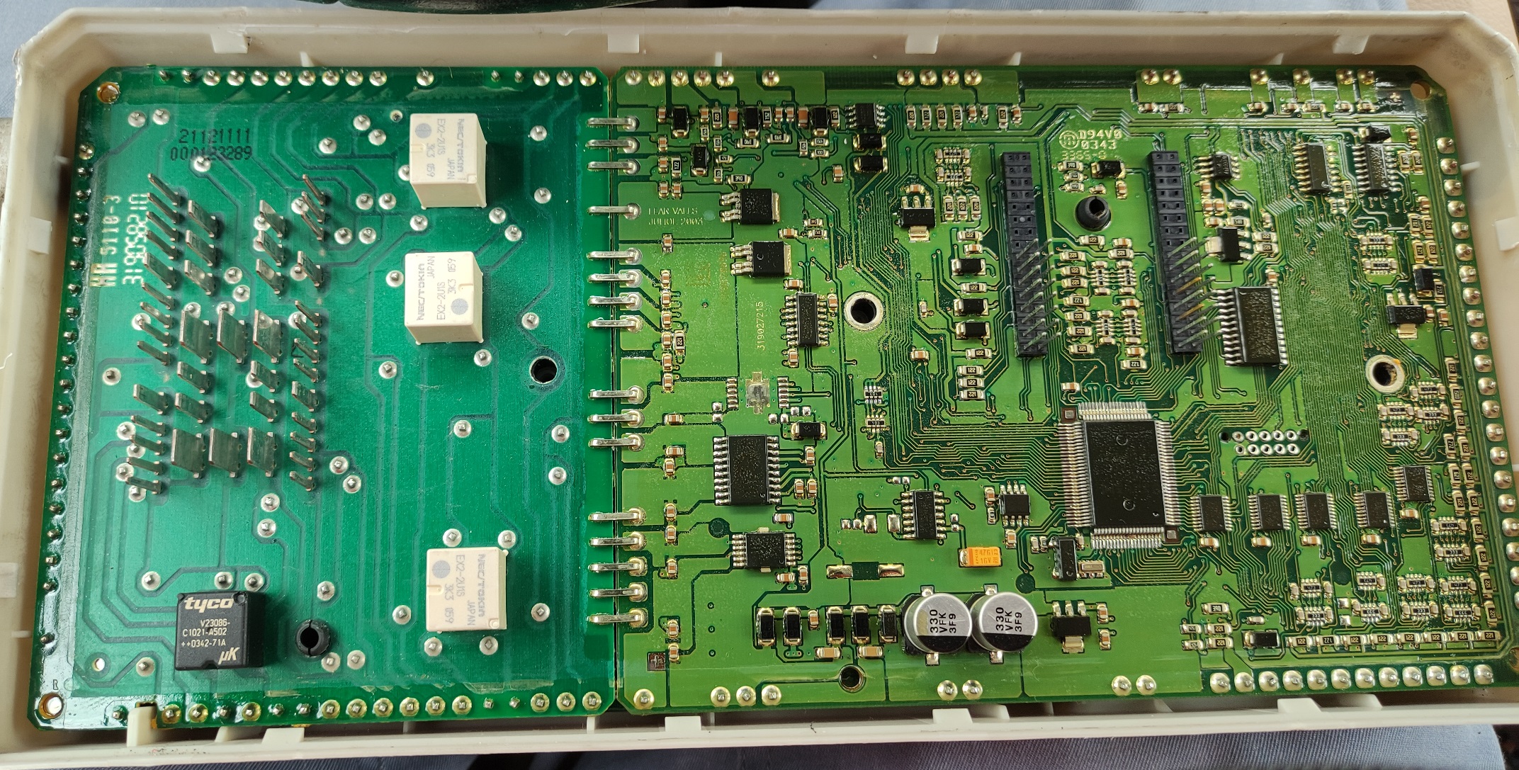 Иначе в кутията на предпазителите платките са две. На два реда. Едната е за цоклите на предпазителите, а другата е с чиповете и релетата. Но се оказа че не мога да намеря майстор, който да ги е разглобявал някога. И никой не знае по какъв начин са свързани двете. Отделно че можеби са залепени към кутията.
