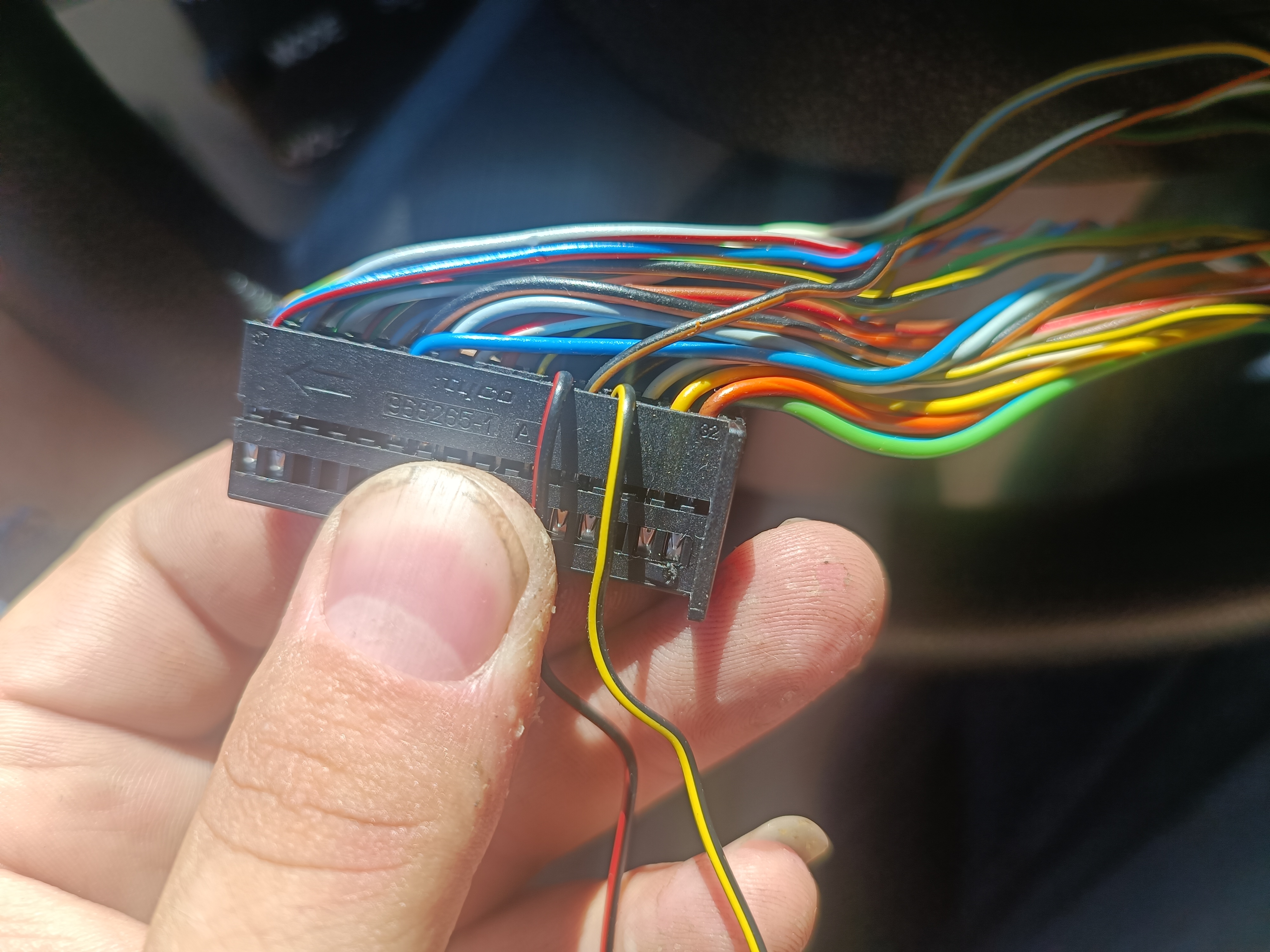 Обучих таблото оказа се че нямам сензор но намерих заложена букса с тапа зад предната греда монтирах сензор взет от морга и всичко си дойде на мястото ударих на греда нямаше кабели от лоста за управление на менюто до таблото за управление на бордовият компютър но и тях ги пуснах 3 на брой и вече имам работещо меню в таблото евентуално трябва да монтирам темпомат но нямам двата кабела от гем модула до кормилната колона ако някой знае на кои пинове отиват ще съм блгодарен.