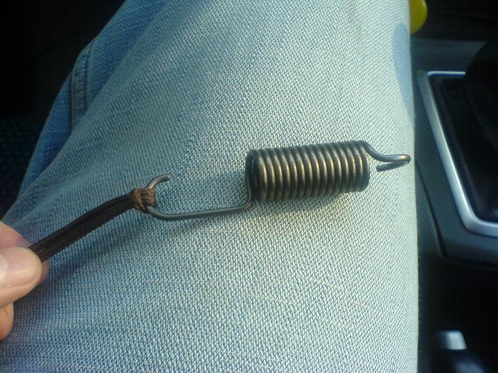 Колега, поставянето на тази пружина не е много лесно упражнение, но ако си по-настоятелен можеш да го направиш и сам. Ето малко снимки от руския форум с два варианта. Струва ми се че варианта с шайбите е по-лесен, защото няма нужда от прилагане на сила при монтажа. Само си изваждаш шайбите една по една след като поставиш разпънатата пружина и си готов