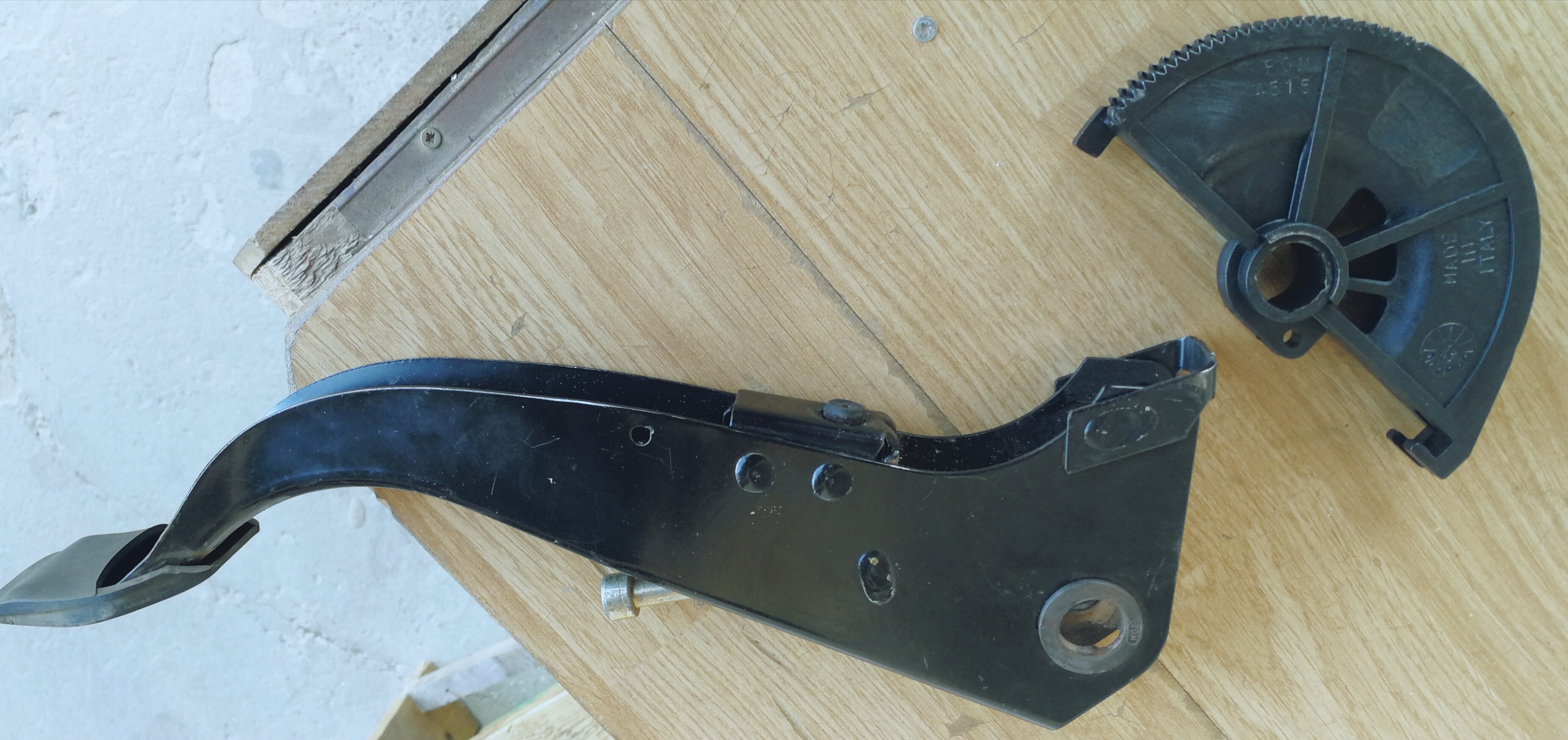 Вече съм го зглобил и колата е в движение вече. Само забравих да снимам в зглобен вид. Малко ми бе проблемно да зглобя педала и държача му. Направих едно приспособление което да натиска пластмасата и ще видя какво ще стане че е много голямо натоварването на отвора за оста. и се чупи най - тънката част от храповика. Н абързо я зглобих че жената е на работа утре и в други ден и и трябва. Затова не я снимах.