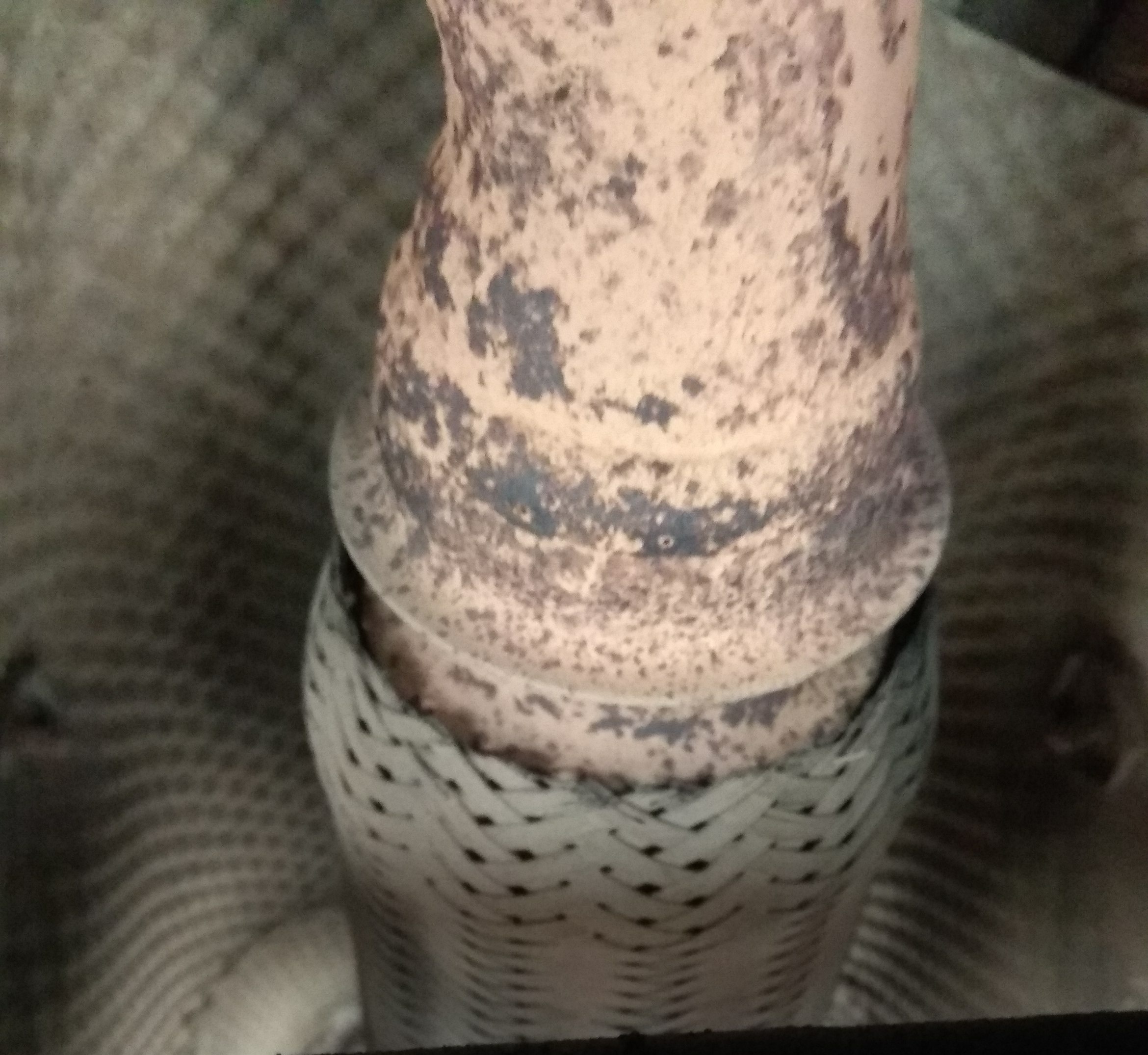 Обаче, това на снимката не е скъсана мека връзка, това е само стоманената оплетка, която пази меката връзка от нараняване. Самата мека връзка представлява гофрирана ламаринена тръба, даваща някаква еластичност в окачването на изпускателната система между купето и двигателя.
