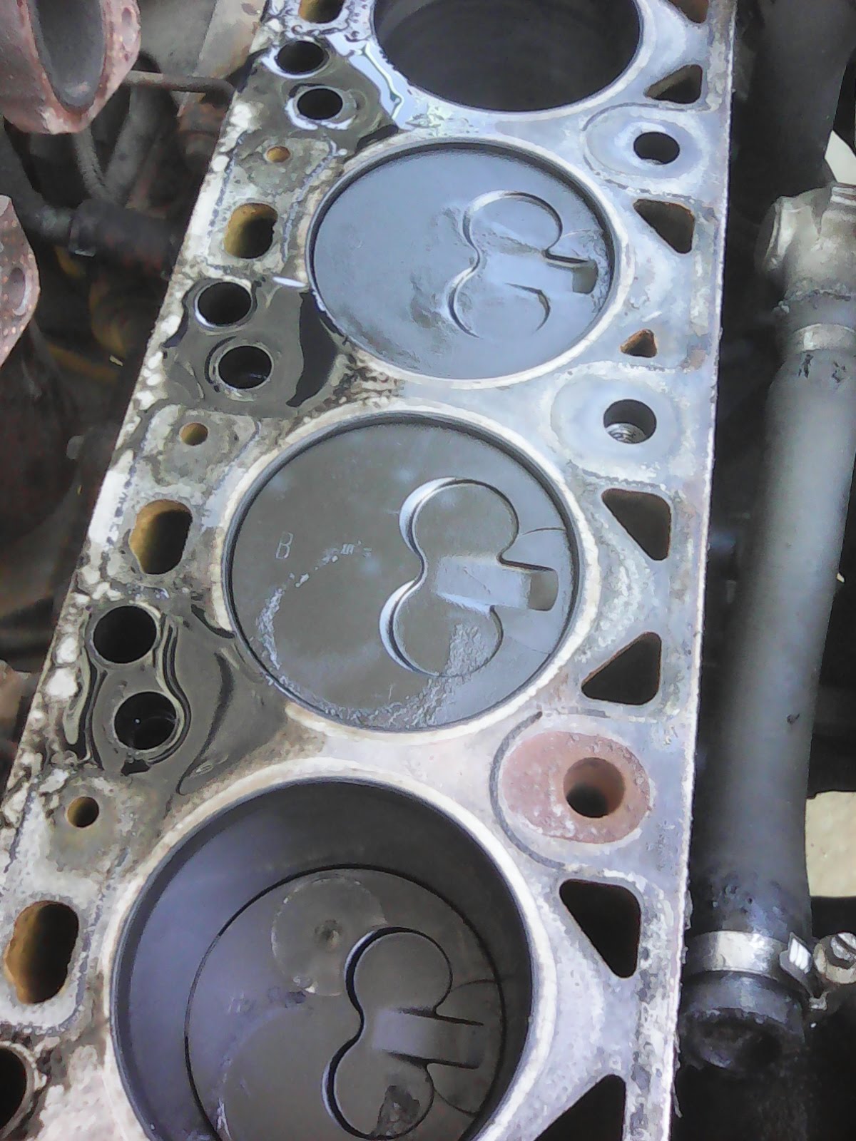 Здравейте колеги, имам (все още) мондео мк2 1.8тд. Преди месец и нещо започна да капе от водната помпа по малко. Колата ни бе нужна всеки ден, защото караме децата на градина. Разстоянието е късо около 2 км и аз реших да рискувам, да и доливам когато е нужно. Знаех, че не трябва, но нали е близо, а и чаках да дойде ваканцията на децата та да взема да я оправя(оставаше 1седмица). НОО нали трябваше да стигнем до "НО", ремъка се скъса. Късмета споходи начинаещия шофьор жена ми. Карала бавно, защото тъкмо щяла да минава легнал полицаи и угаснала. ПРОБВАЛА да запали няколко пъти и ...нищо. Чак онзи ден успях да сваля главата, че все не достига време от работа и не успявах да намеря първоначално торкс 70 за болтовете на главата. Питането е _колко е зле положението, как се снемат повдигачите, защо единия болт беше ръждясал, а на някои от другите имаше като роса по тях. Абе като цяло колко е зле положението, защото предкамерите са всичките нацепени.