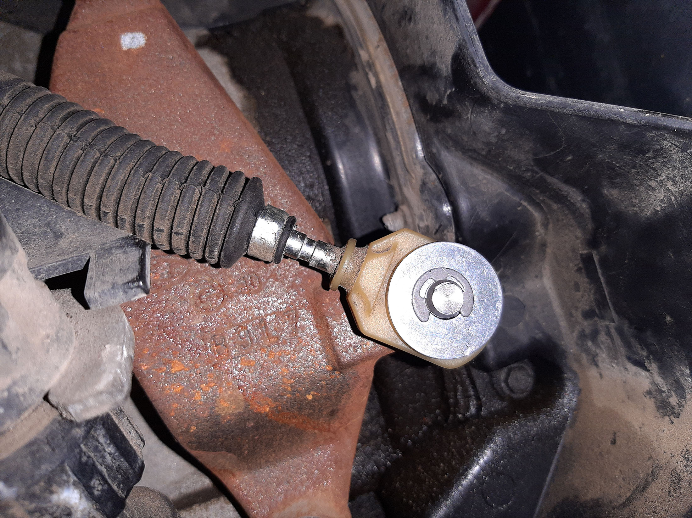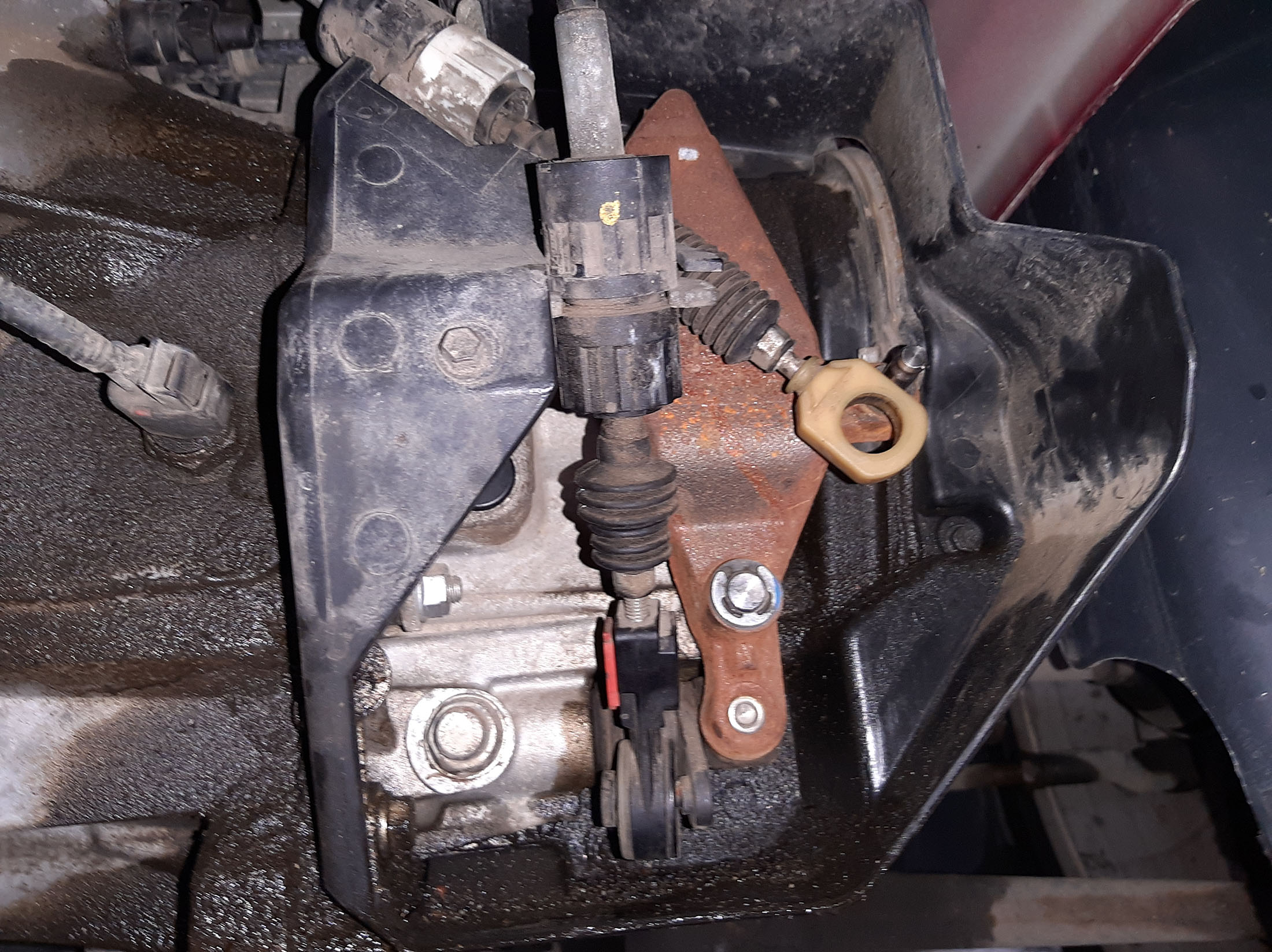 Не съм сигурен точно коя е Фиестата, но ако е тази с жилата на скоростната кутия, обикновено се поврежда гумената втулка на снимката, която Форд не продава като резервна част, но я има в интернет с доставка от Китай. Проблемът е, че се чака около месец, а през това време колата не може да се ползва. Моето временно решение с две шайби, парче от маркуч и зегерка също се вижда на снимките.