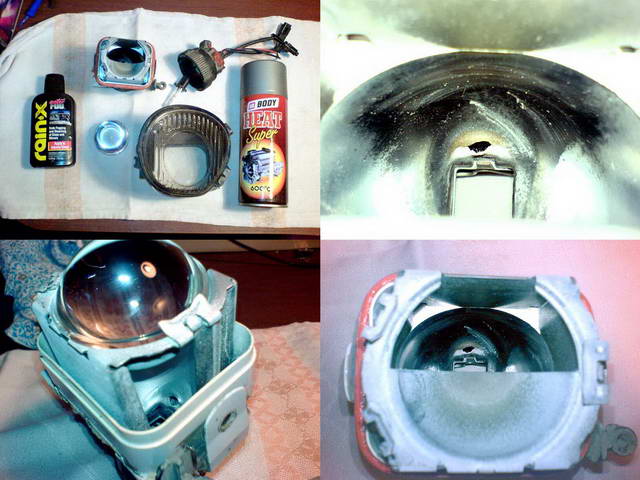Нещо не мога да видя както трябва къде е пръснат сребърния спрей,на рефлектора или на стъклото на халогена....Предполагам долната половина е напръскана или греша