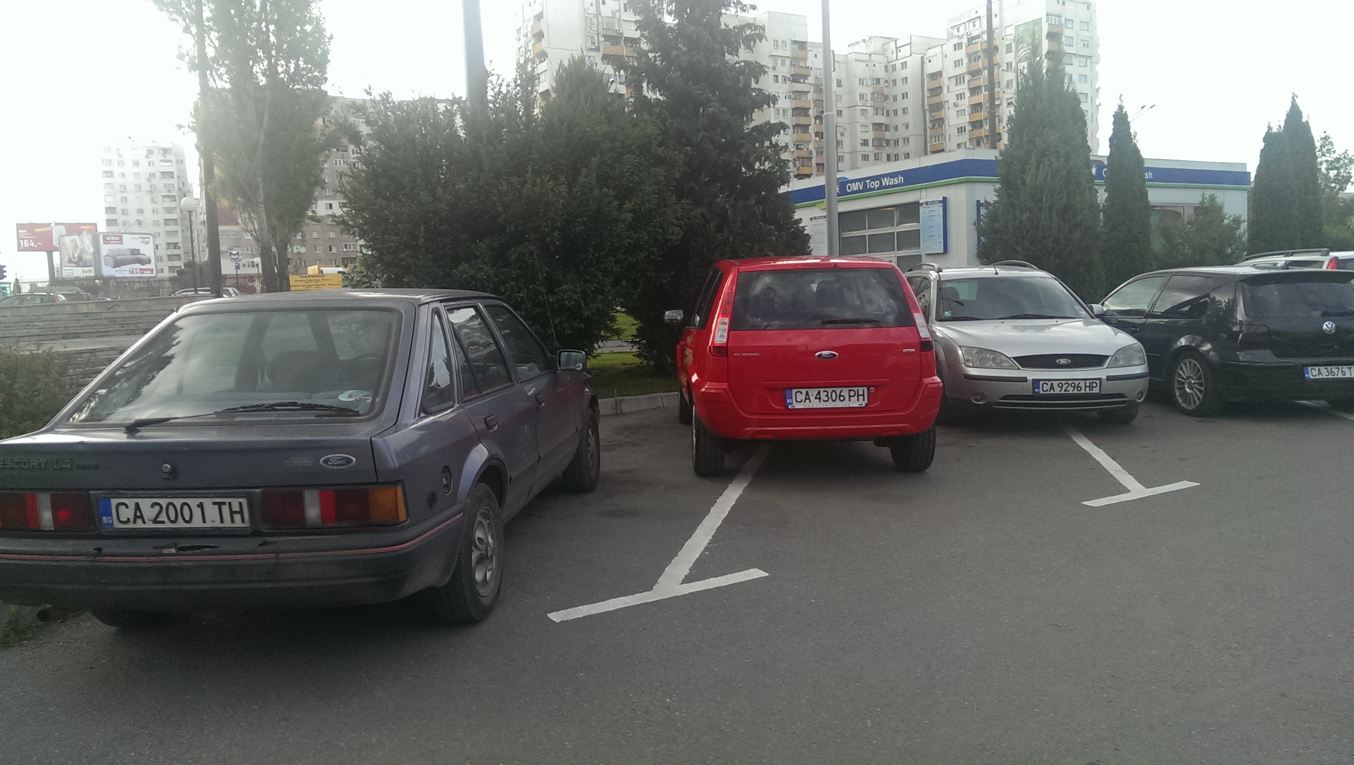 Последните две коли на паркинга бяха моята и на фордманиака.