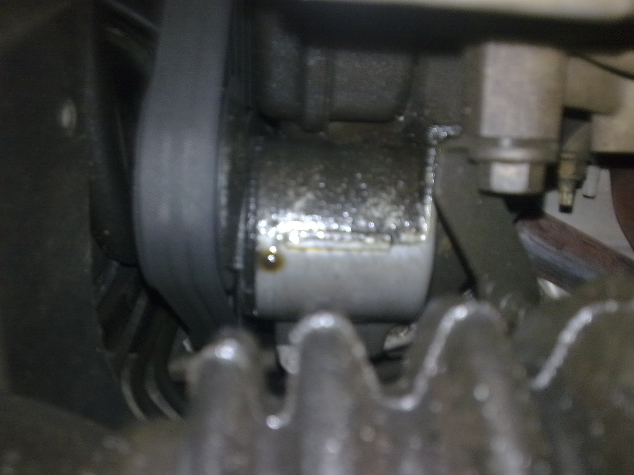 Здравейте колеги! Забелязах омасляване под хидравличната помпа преди време. Днес успях да намеря канал и да огледам, а и да направя снимка на мястото. Капката която се образува е под хидравличната помпа, около най долната ролка, която се задвижва от пистовия ремък. Някакви идеи от къде може да просълзява? Немога да разбера дали е хидр. масло или двигателно. Теча не е голям, просто се образува капчица. Хидравличната рейка е без следи на омазняване. Благодаря ви!