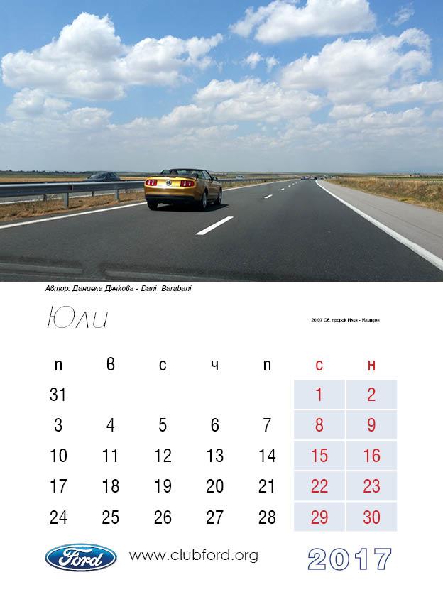 Календар на Клуб Форд България за 2017