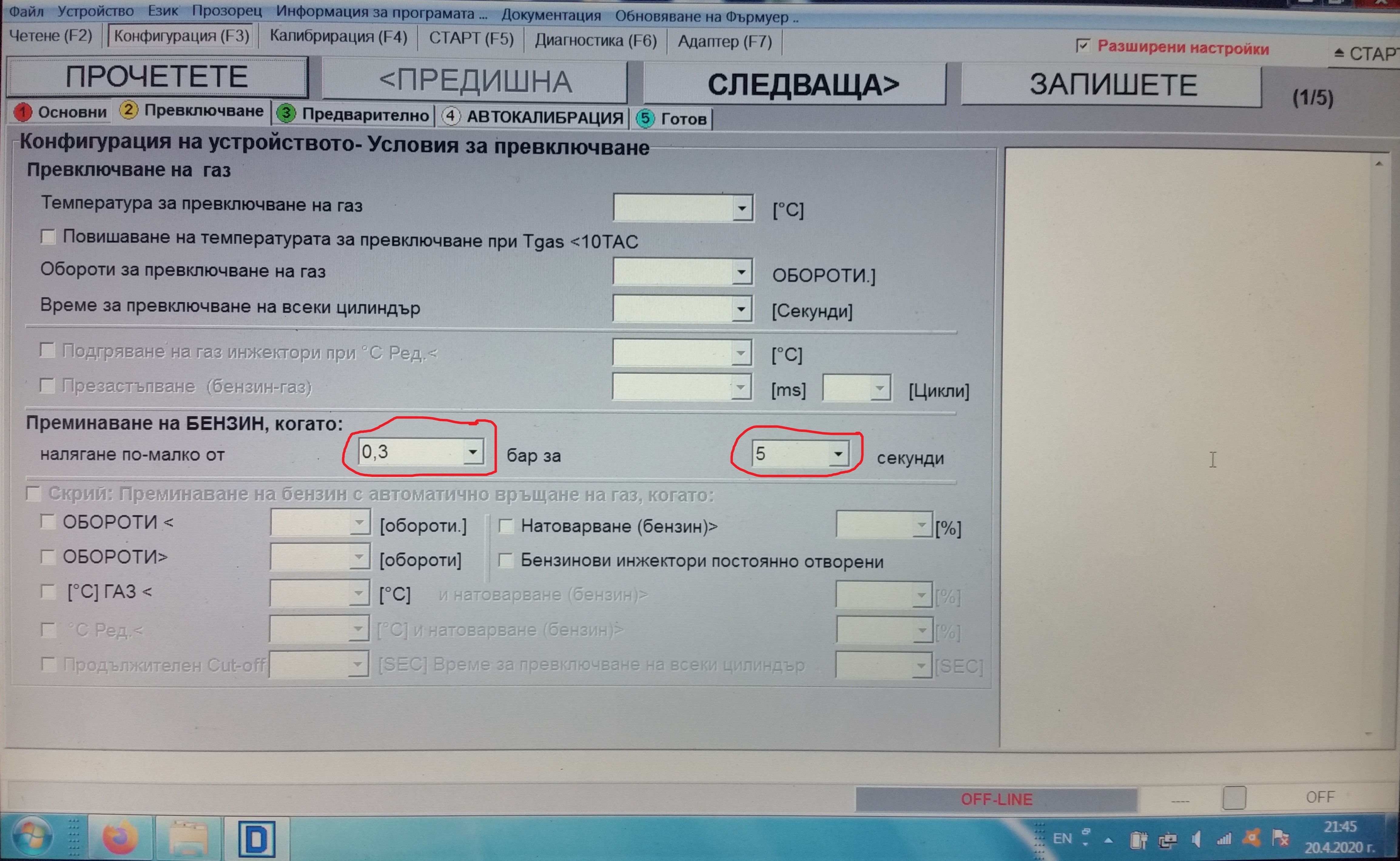 Значи е станало недоразумение. Просто исках да отбележа, че тези настройки на снимката зададени на KME Diego, не ми се виждат безопасни. За съжаление нямам опит с Lovato и не мога да ти кажа дали в софтуера може да се задава условия за преминаване от бензин на газ. Може политиката им е да е тези настройки да са твърдо зададени и да не могат да се променят (точно с цел безопасност). Примерно твъдо зададен процент на спад на работното (диференциално) налягане (да речем 20%), да води до автоматично преминаване на бензин. Но все пак някъде из софтуера трябва да се вижда/задава какво е работното налягане (диференциално), което да поддържа изпарителя.