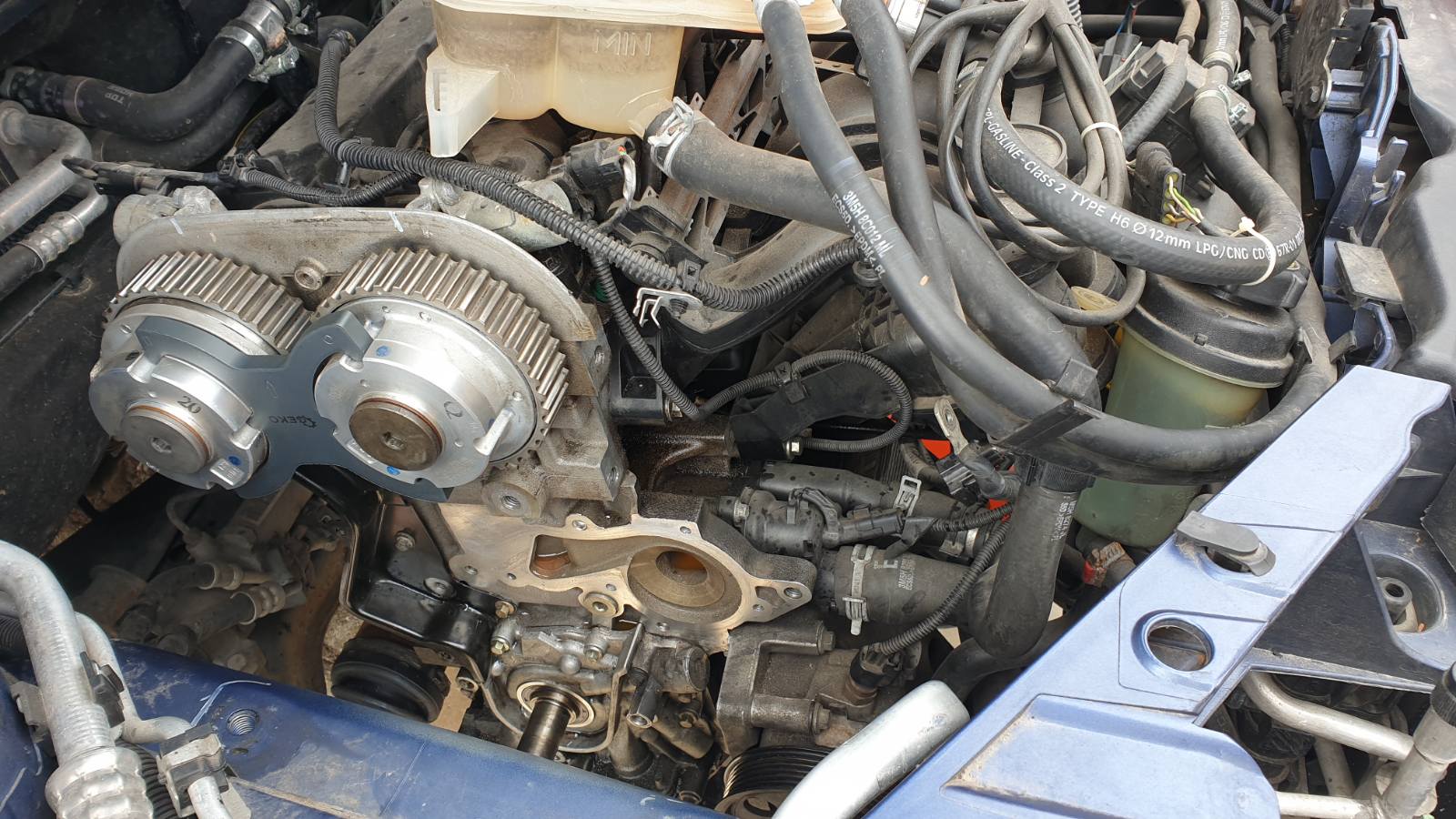 Колега, би ли пояснил за какви пластинки/ламаринки говориш? Иначе мотора се зацепва със спец инструмент, който фиксира муфите на разпр. валове и пин, който фиксира коляновия вал в ГМТ.