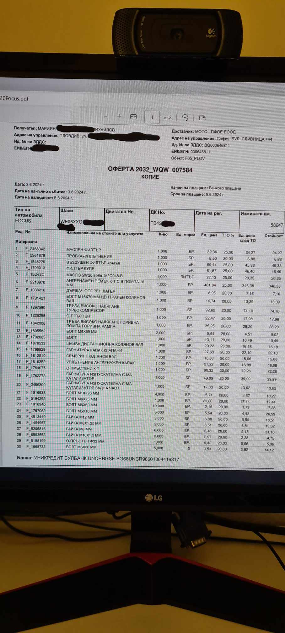 Ако все още някой се чуди колко струва ГОЛЯМОТО обслужване на Екобуст двигател, на 9-10 годишен Форд, на 60 000 км, през 2024 г.
