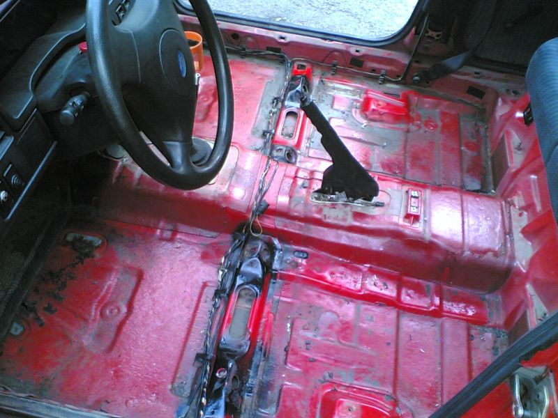 Вчера реших да махна всичко що е по пода и всичко което е все още мокро. Та за да махна мукета трябваше първо да отсраня някой друг елемент от интериора - пластмасовите прагчета, седалките и онова нещо което ми е м/у седалките под скоростния лост (наистина нямам си идея как да го кръстя). Естествено се узорих най-много с него защото трябваше да разглобя и махна скоростния лост. С няколко кръц-кръц махнах и мокета и отдоло беше ужас. Имаше някакви оплътнения, миришеха на блато и бяха като напоени гъби с вода. Та сега тия неща се сушат и тия дни ще изпера мокета. Ето ви малко снимки, а после ще покажа как изглежда и почистено